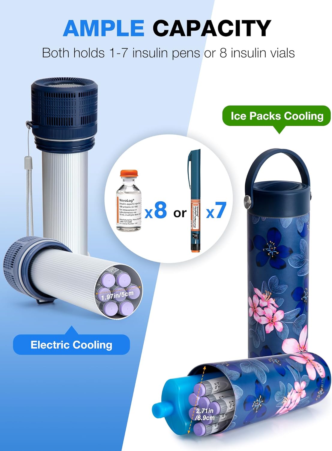 - 📦 Larger Capacity & Smaller Size - Unlike other insulin organizer, the YOUSHARES diabetic travel case has more space to hold up to 8 insulin vials or 1-7 insulin pens or other medications. It measures only 2.9 x 2.9 x 10.2 in and can be easily held in one hand. Comes with a portable backpack and 90-degree charging cable for more convenient travel!