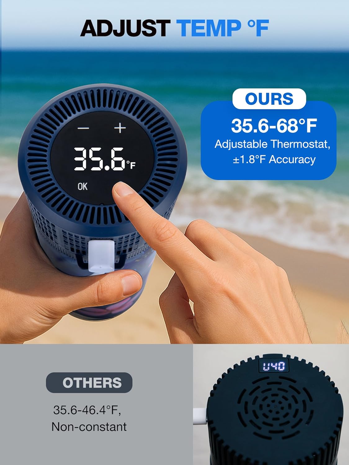 - 🌡️ Adjustable Thermostat & Temp Display - The electric insulin case allows you to manually adjust the inner temperature (from 35.6-68°F , accuracy ±1.8°F) , and maintains constant temp without time limits. It has real-time temperature display to monitor the inner temp and support °C/°F toggle.