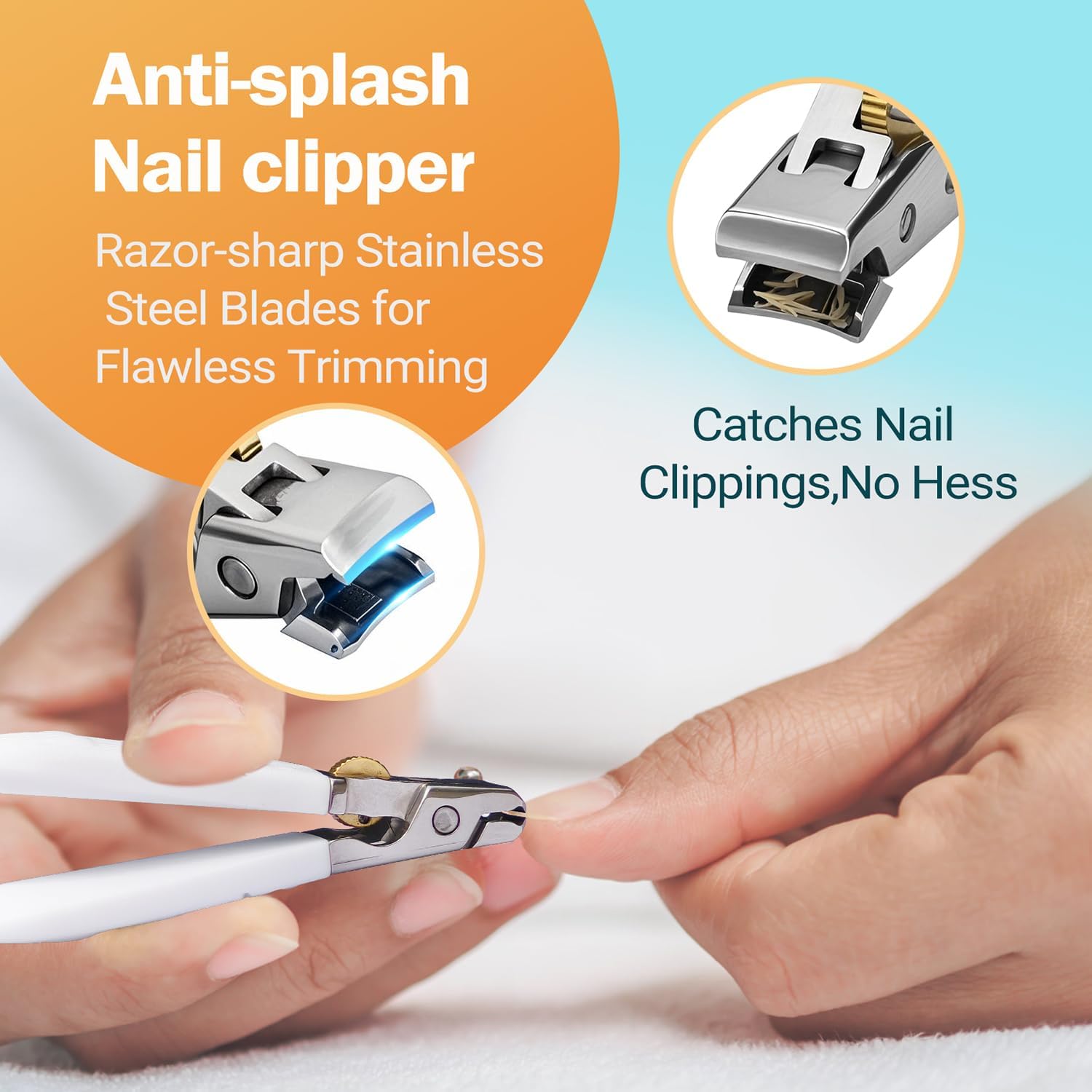 - 【Contained Cutting with Built-in Catcher】Our toenail clipper with anti-splash guard effectively contains clippings for mess-free grooming. The one-tap emptying system simplifies cleanup, specially designed for senior nail care and parents managing family hygiene. No more scattered nail fragments on floors.