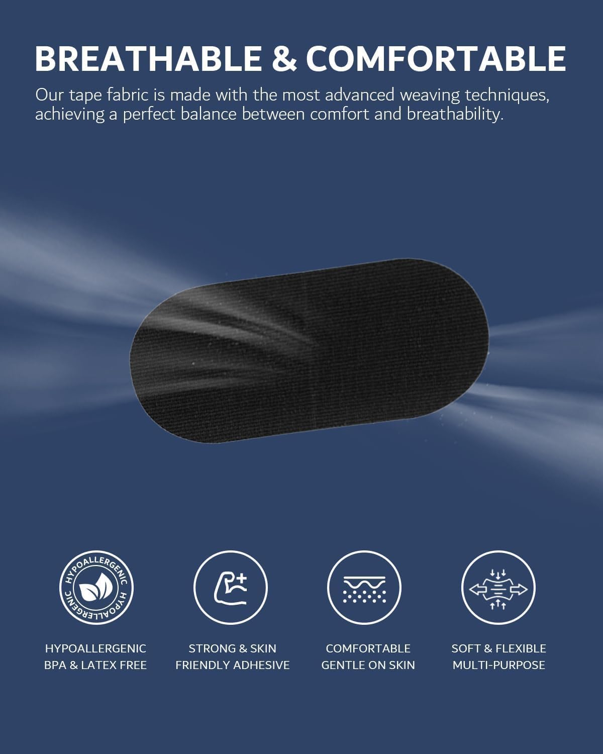 Black Premium Tape (60 Pack) - Pain Free Removal, Hypoallergenic, Latex Free & Gentle On Skin - Skin Friendly Adhesive Cotton Tape