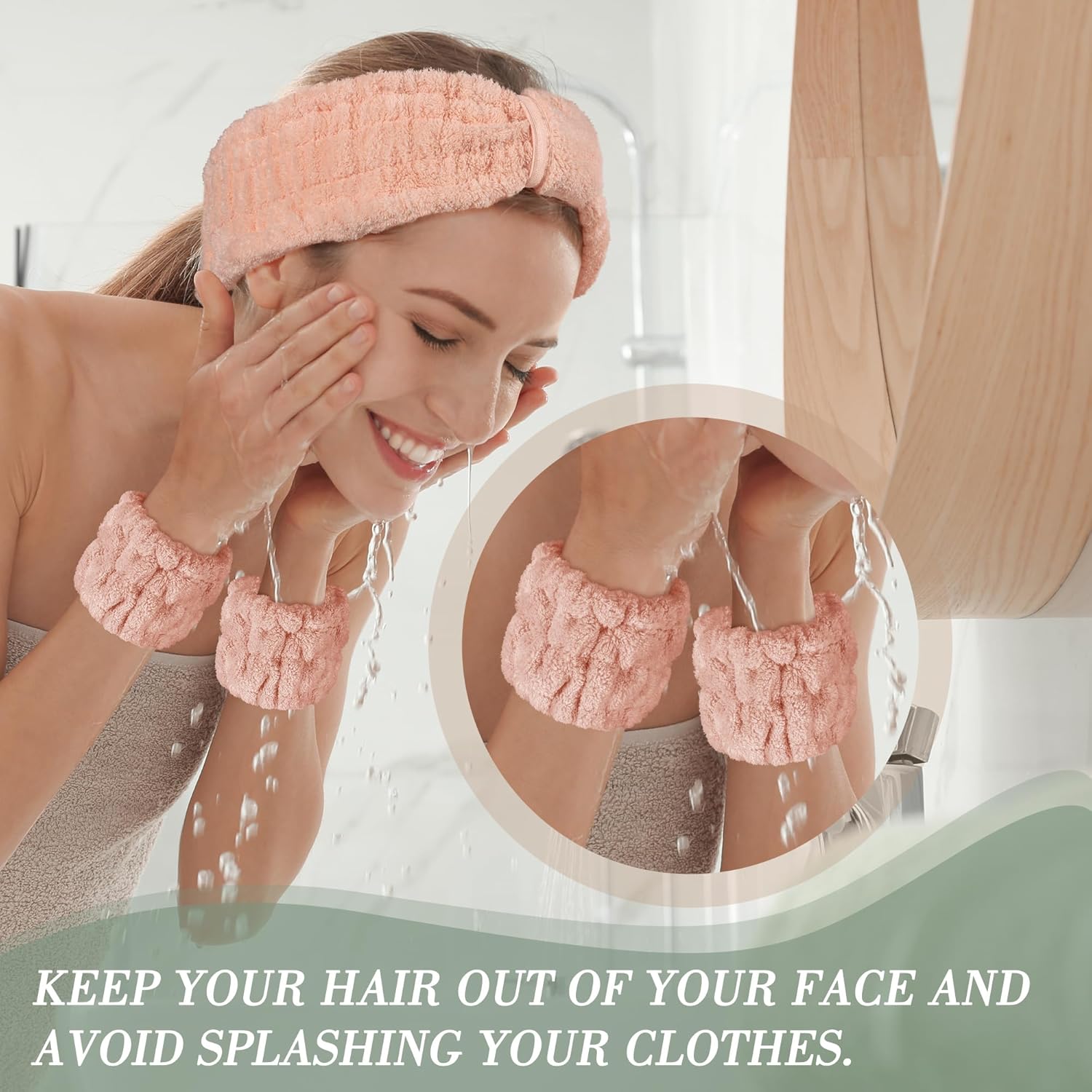 - 【Your Skincare Sidekick & Arm Saver】Comfortable skin care headband keeps every strand off your face and totally dry during washes. The super-absorbent wristbands? They're your drip-free goddess, stopping water and serums from running down your arms. Soggy sleeves are officially canceled!
