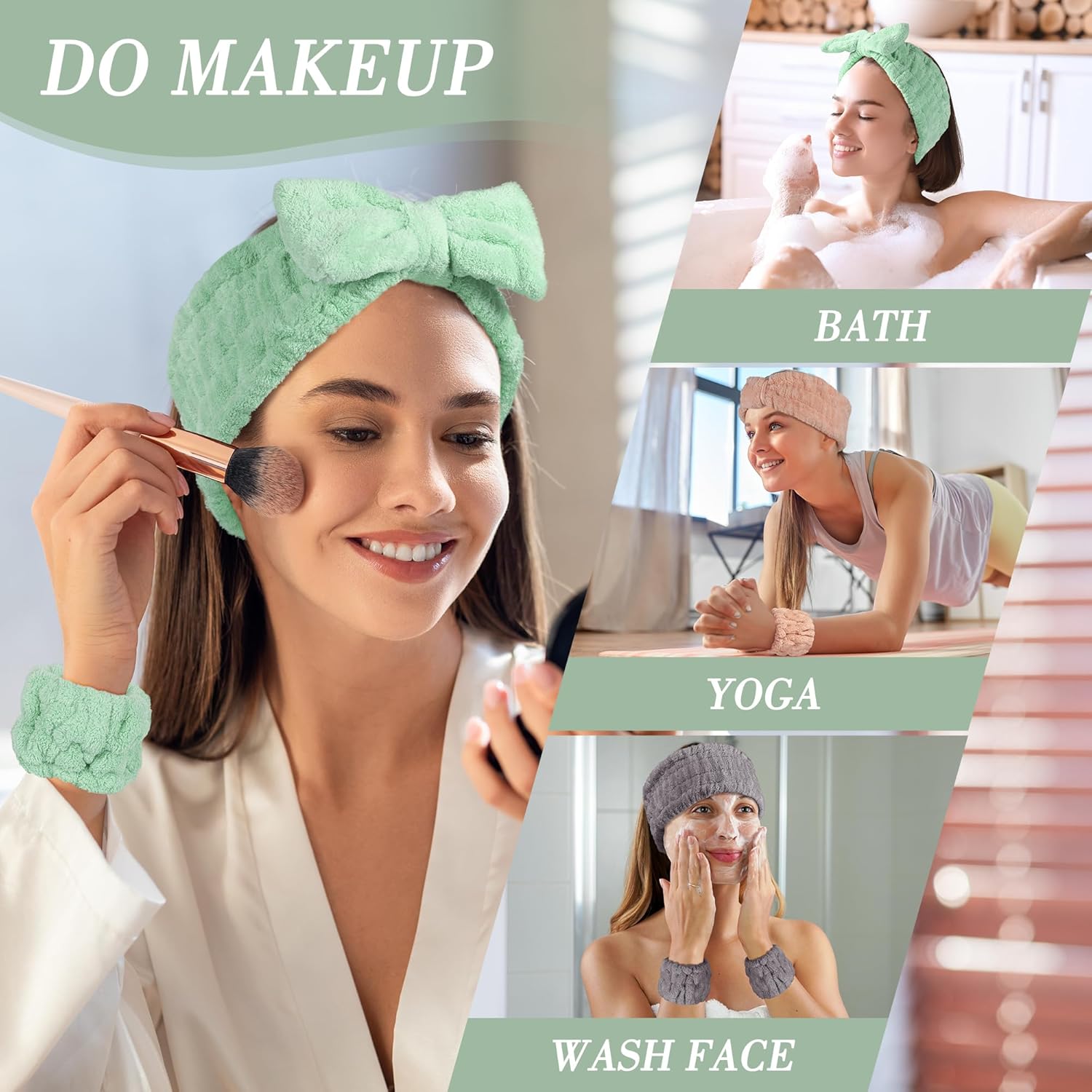 - 【3 Headbands & 6 Wristbands】Get ready to mix and match like a pro! This skincare headband and wristband set comes with 3 stylish spa headbands (in different colors) and 6 matching wristbands. Create your perfect combo daily—based on your mood, outfit, or vibe. Your spa crew, your rules!