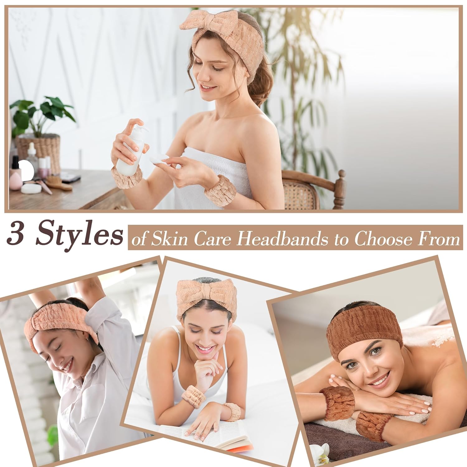 - 【3 Headbands & 6 Wristbands】Get ready to mix and match like a pro! This skincare headband and wristband set comes with 3 stylish spa headbands (in different colors) and 6 matching wristbands. Create your perfect combo daily—based on your mood, outfit, or vibe. Your spa crew, your rules!