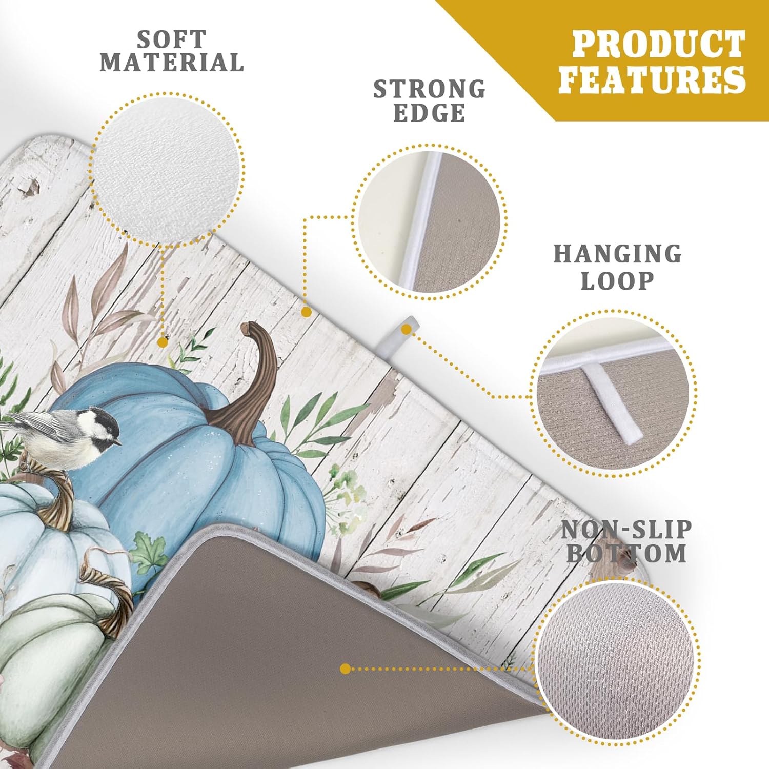 Fall Blue Pumpkin Dish Drying Mat 18x24 inch Autumn Harvest Dish Rack Mats Reversible Microfiber Drainer Pad for Kitchen Countertop Decor