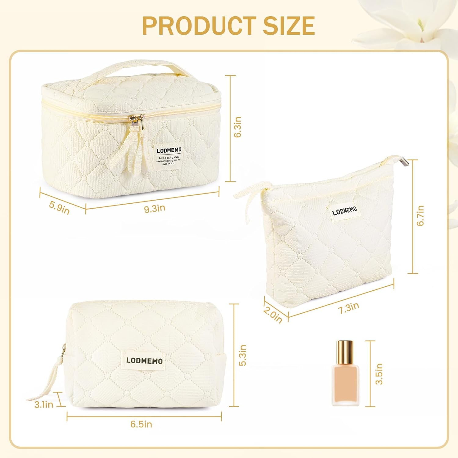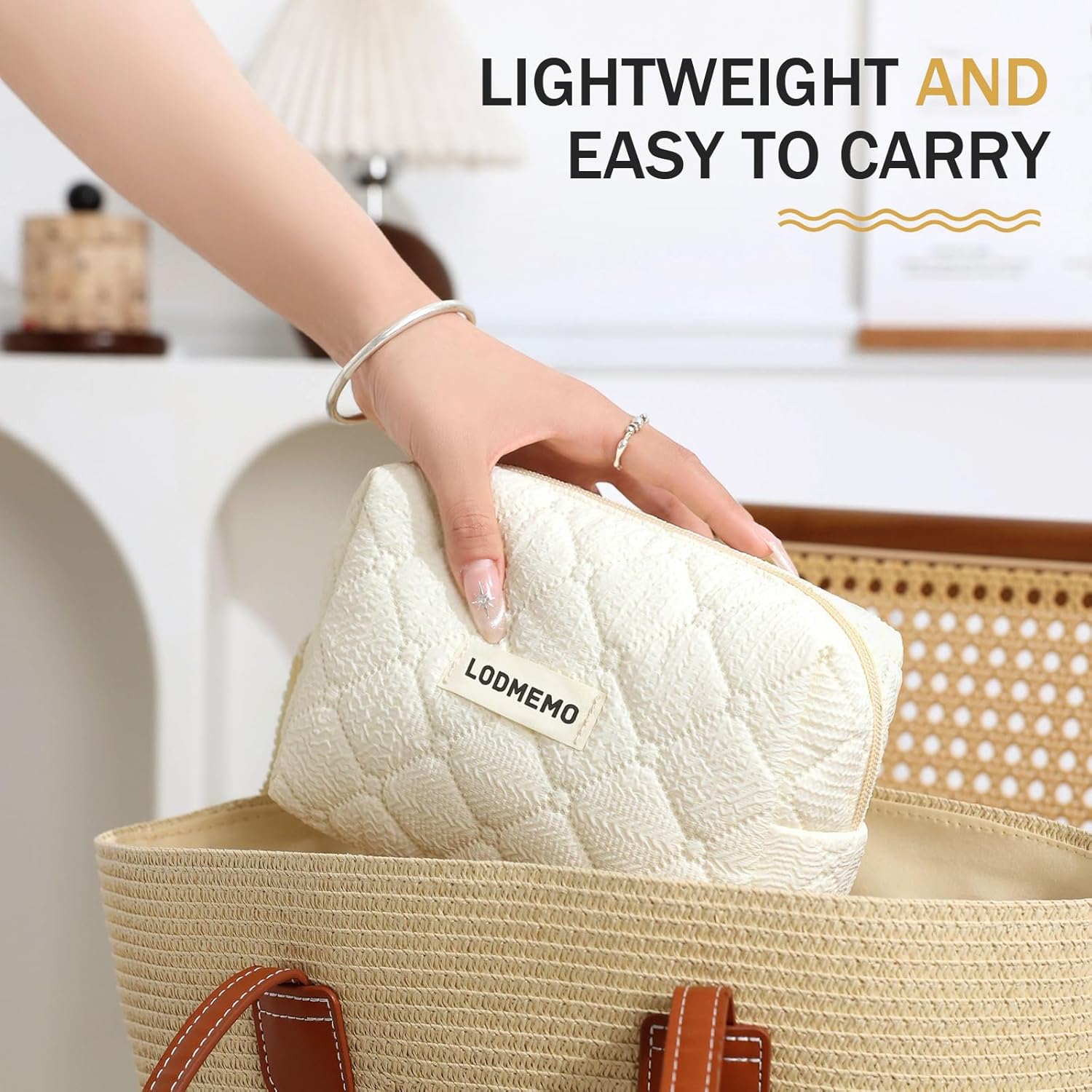 - 【Durable & Easy to Clean】Made from premium cotton, this quilted makeup bag is soft, durable, and easy to clean. Reinforced stitching enhances its longevity, helping these cute makeup bags withstand daily use while maintaining its neat appearance