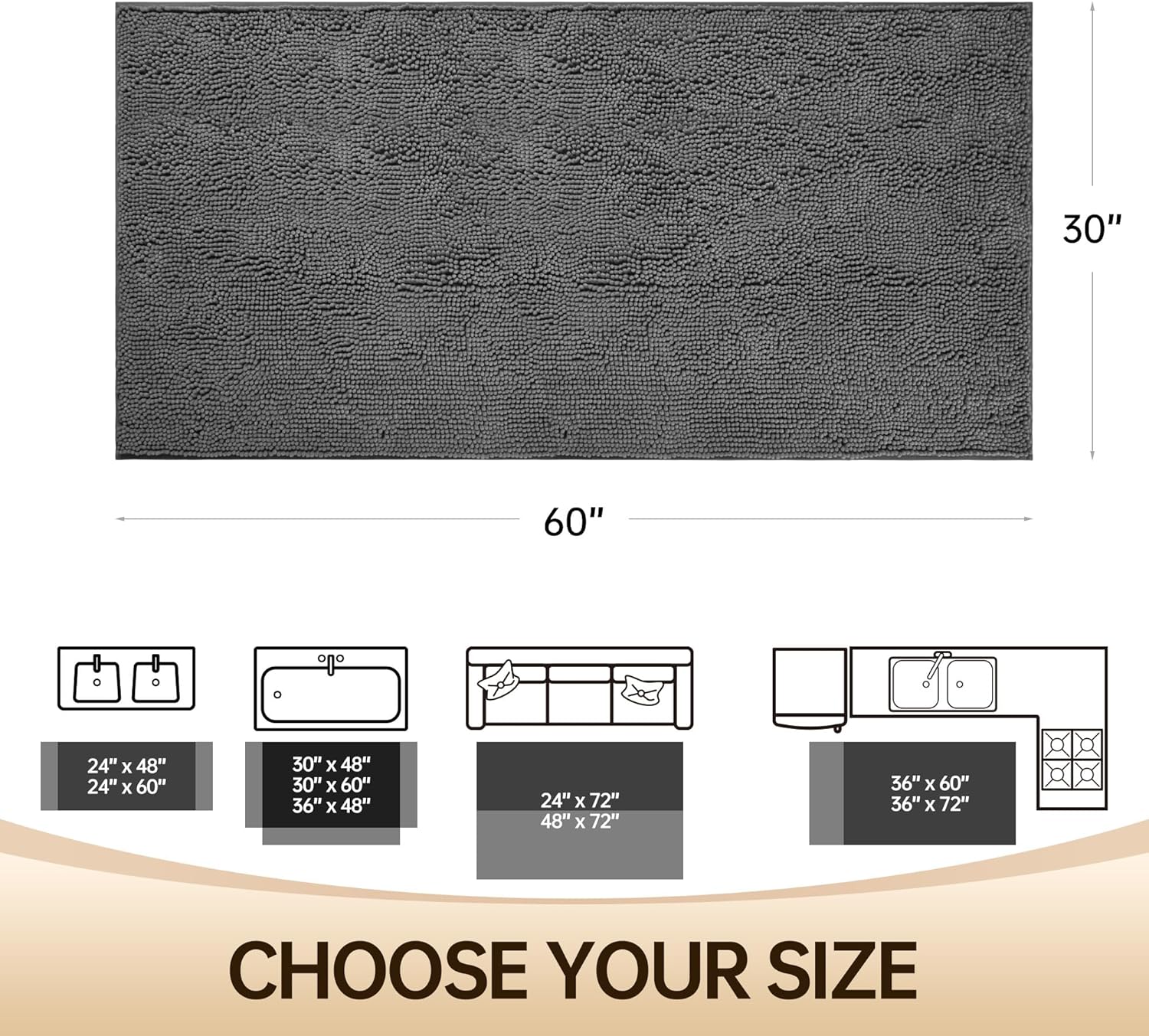 Amyracel Bathroom Rug Mat 30x60, Thick Soft Quick Dry Absorbent Chenille Bath Rug, Rubber Back Non Slip Machine Washable Bath Mat for Bathroom Shower Tub Floor