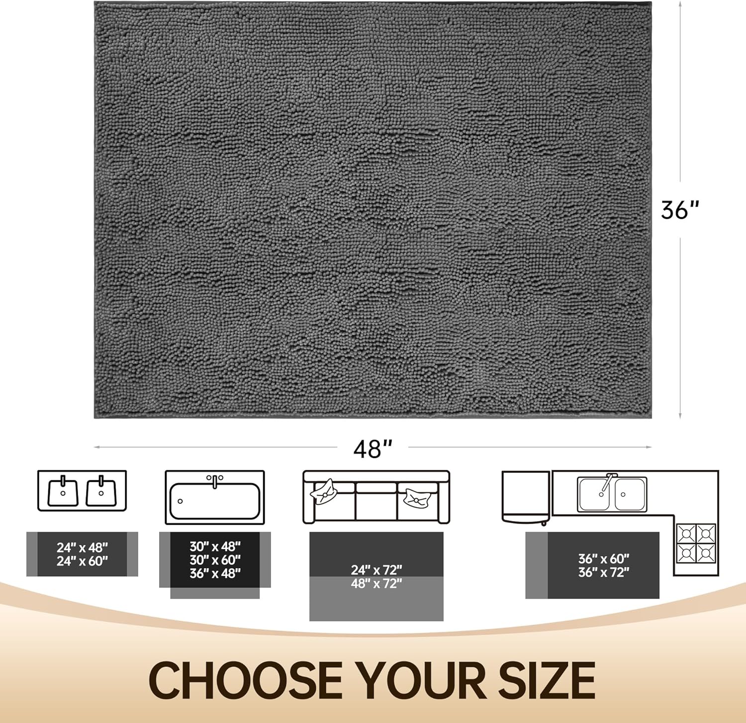 - 【Versatile Use】 8 size options (from cozy 24x48" to grand 48x72" bathroom rug mat) with hotel-spa styling. Coordinates perfectly with modern farmhouse or minimalist decors. Secret hack: Use oversized mats as comfy kneeling pads during bubble bath pampering.