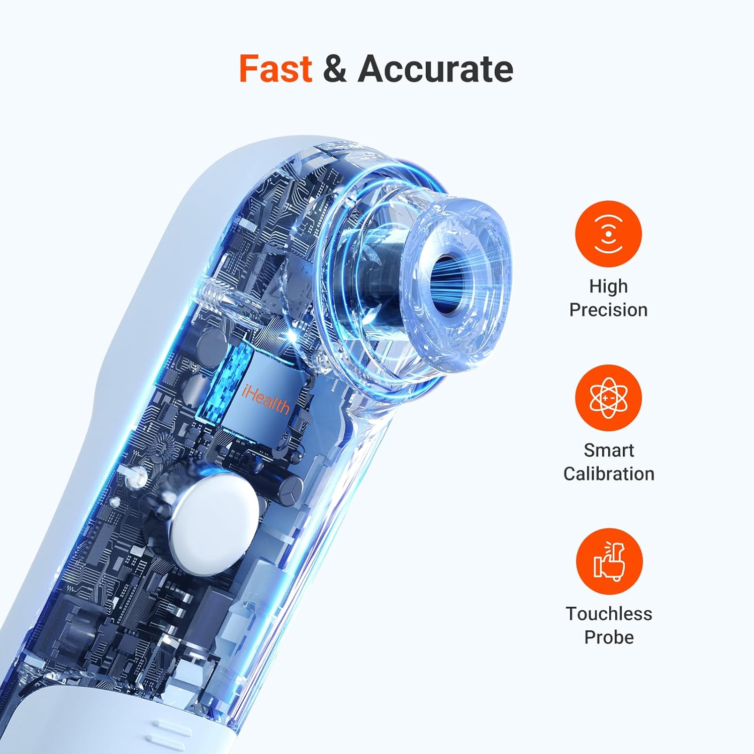 iHealth Infrared Digital Thermometer for Adults and Kids, Baby Thermometer with 3-in-1 Mode & 3-Color Prompt, Fever Alarm & Silent Mode, Forehead & Object Detection, 40 Memory Storages, PT9L, Blue