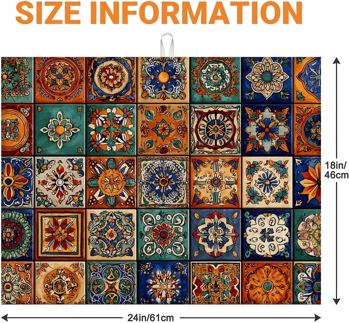 Dish Drying Mat For Kitchen Counter, Talavera Mexican Tiles Microfiber Absorbent Dish Drainer Rack Pad Reusable Large 18x24in Drying Mat
