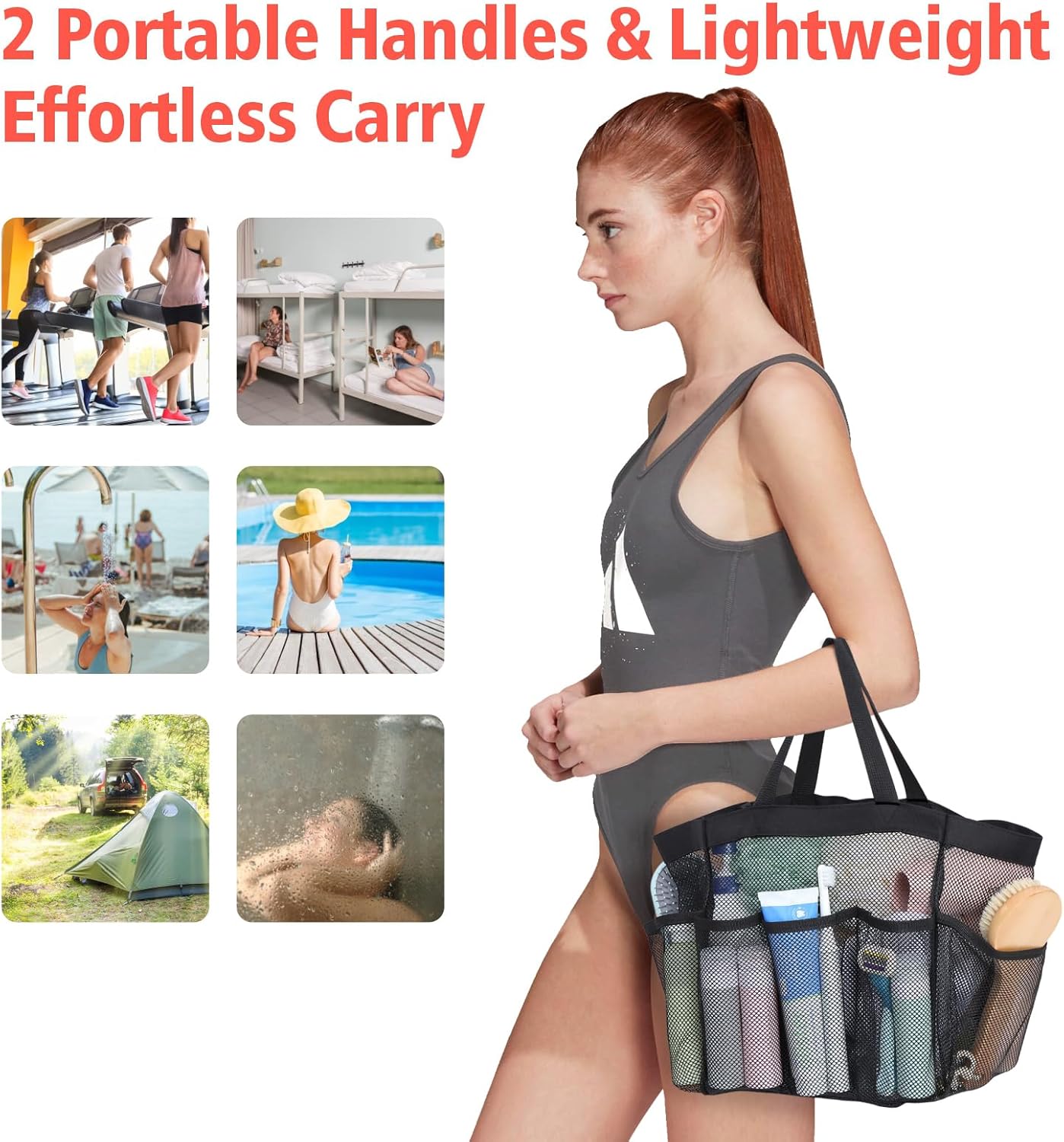 - 7 Upgrade Deeper Pockets for Peace of Mind: The shower tote bag features 7 upgraded exterior pockets with 7-inch depth keep tall bottles upright and secure. No more spills or lost items while youâre on the move