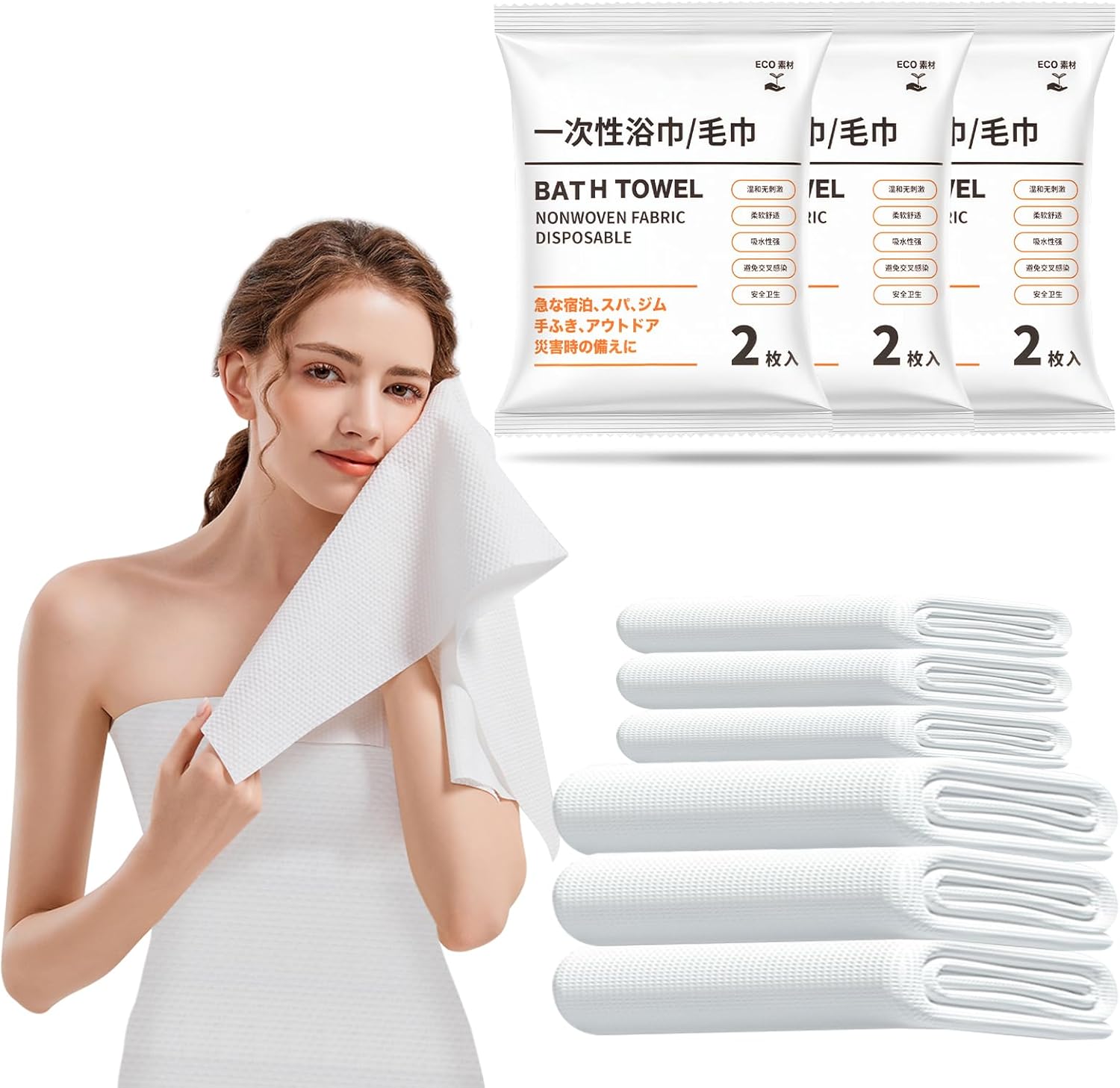 SAILYLENCEY] 6-Pcs (3-Packs) Disposable Bath Towel& Wash Towel Set - Thickening, Portable, Individual-Packing, Ultra Absorbent & Compact for Travel/Emergency/Camping/Sports