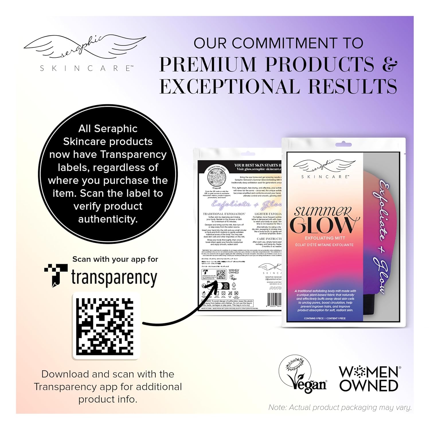 Seraphic Skincare (Summer Glow) Premium Exfoliating Mitt for Body 1pc– 100% Vegan Viscose Traditional Body Scrub Glove Kessa Korean Washcloth – Body Exfoliator for Self-Tan Removal & Keratosis Pilaris