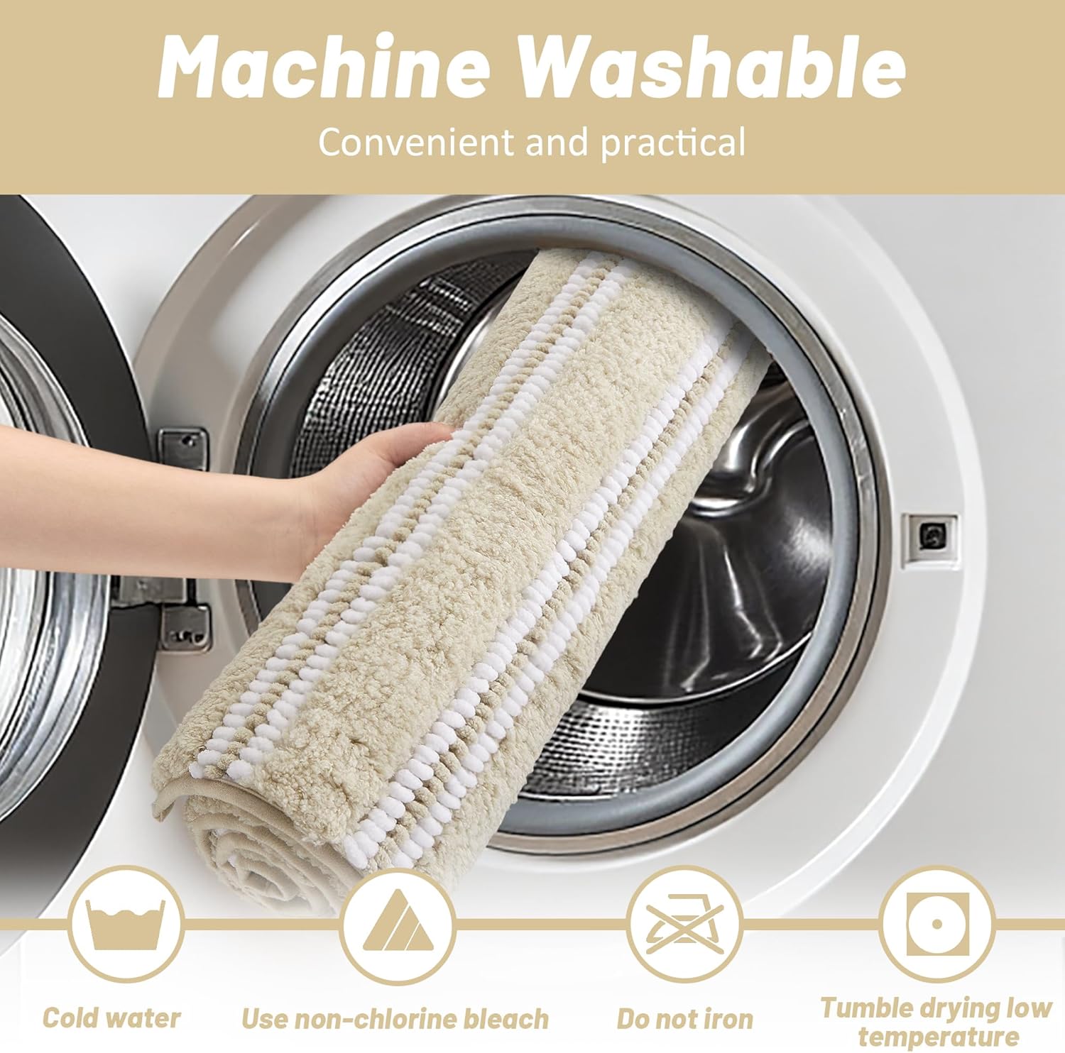 - 【Anti-Skid Backing Bathroom Rug】The backing of these bathroom rugs non slip washable is made of TPR, which can provide a stable grip on various floors. The bathroom rugs will not slide or shift. Whether it is smooth tiles, wooden floors, or slightly uneven floors, these bath mats for bathroom can be firmly fixed.