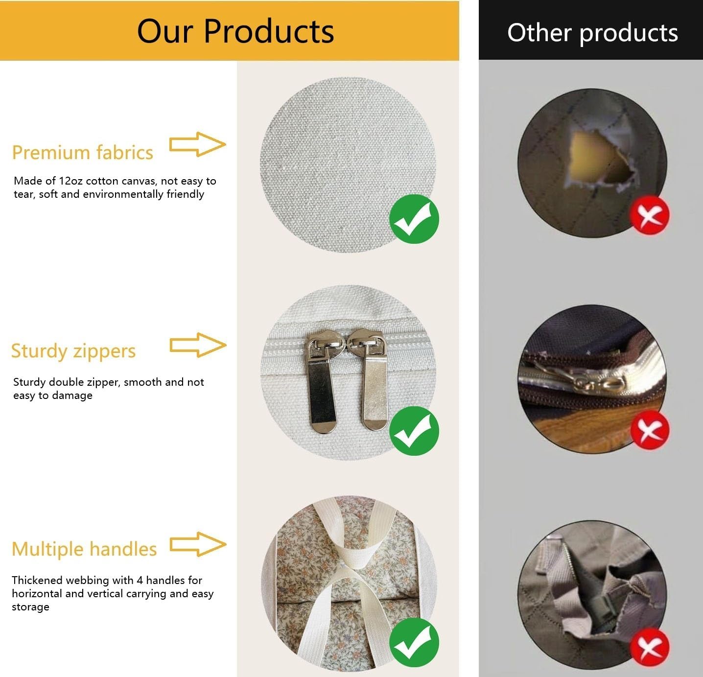 - Portable handles: The storage bag is equipped with four convenient and sturdy webbing handles! All are made of double-line cross-stitch, the top handle is easy to carry, and the side handle is easy to lift, making it more convenient for you to use in life.