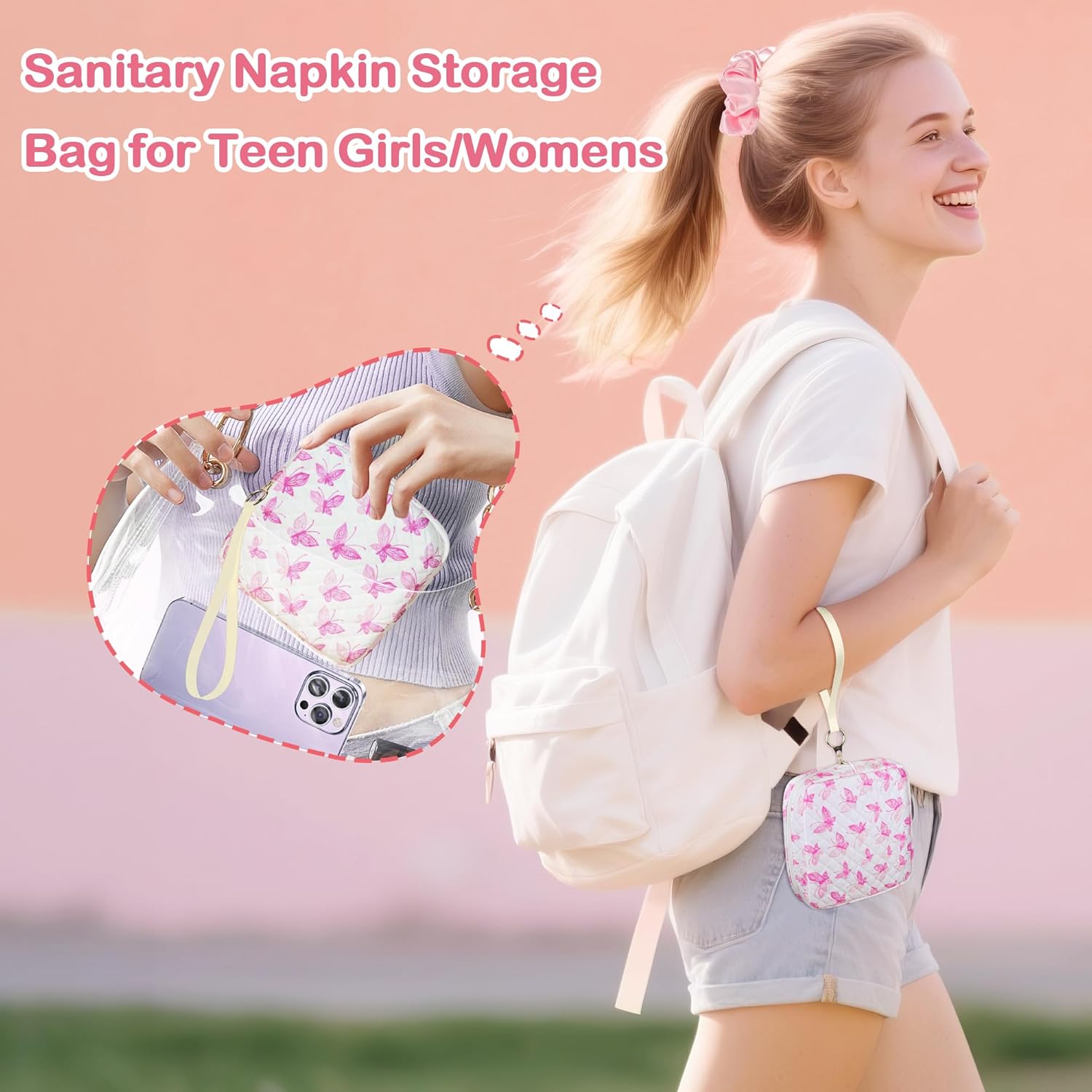 Tampon Holder for Purse, Quilted Period Bag Sanitary Napkin Storage Bag for Girls Womens, Portable Feminine Emergency Pad Period Pouch(Butterfly White)