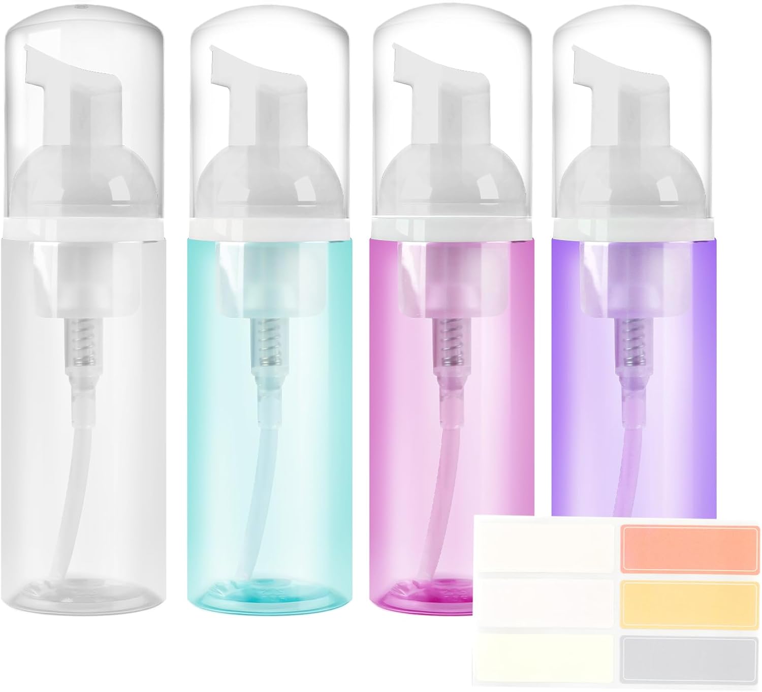 - Travel Size: Each set comes with 4 PCS 5.1-inch × 1.4-inch foam pump bottles in 4 different colors, each with a capacity of 60 ml/2 oz. Compact and lightweight, the simple and stylish design is ideal for home and personal use.