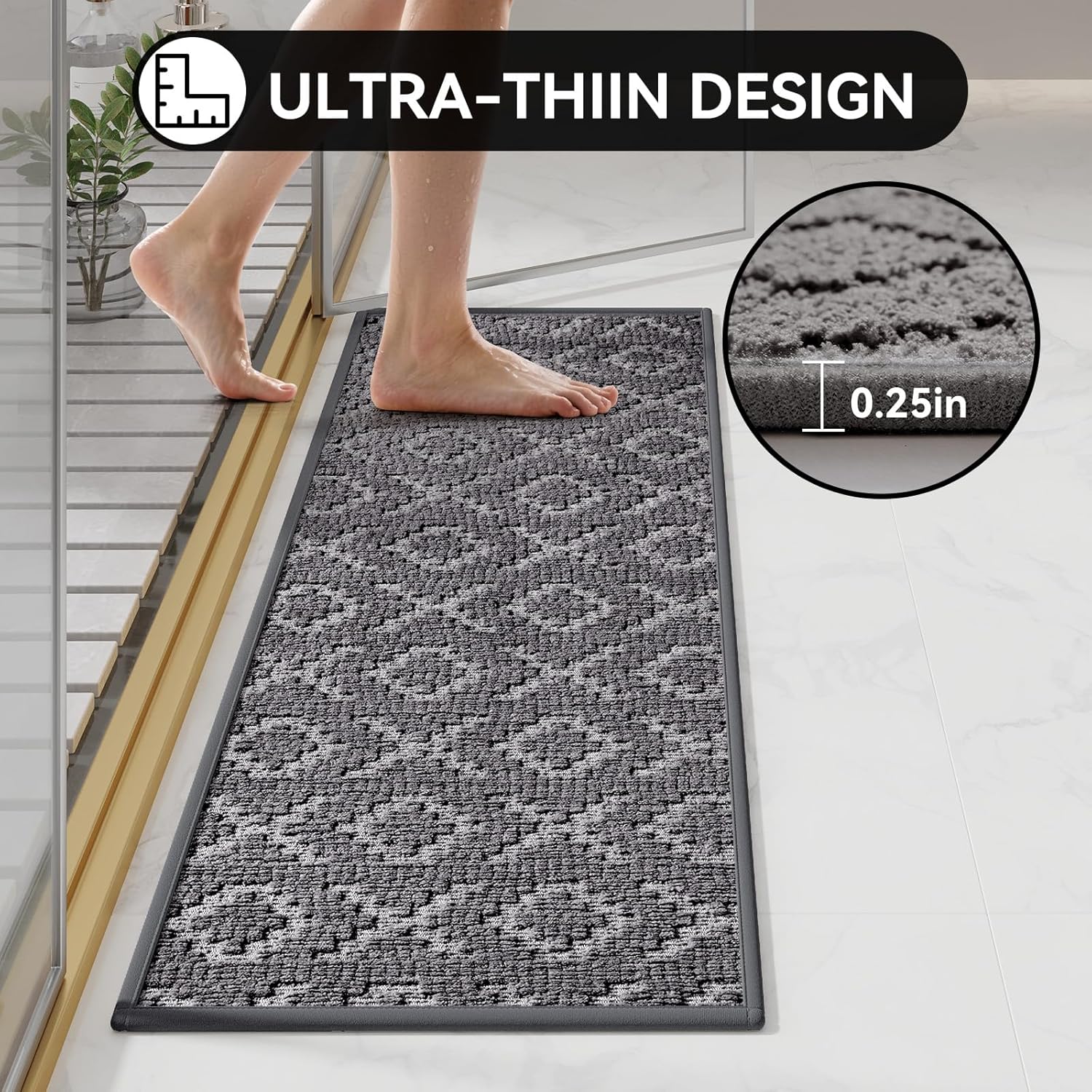 Bathroom Rugs Non Slip, Super Absorbent Quick Dry Bath Mat, Rubber Backing Ultra Thin Bathroom Mats Fit Under Door Bathroom Floor Bathtub Shower