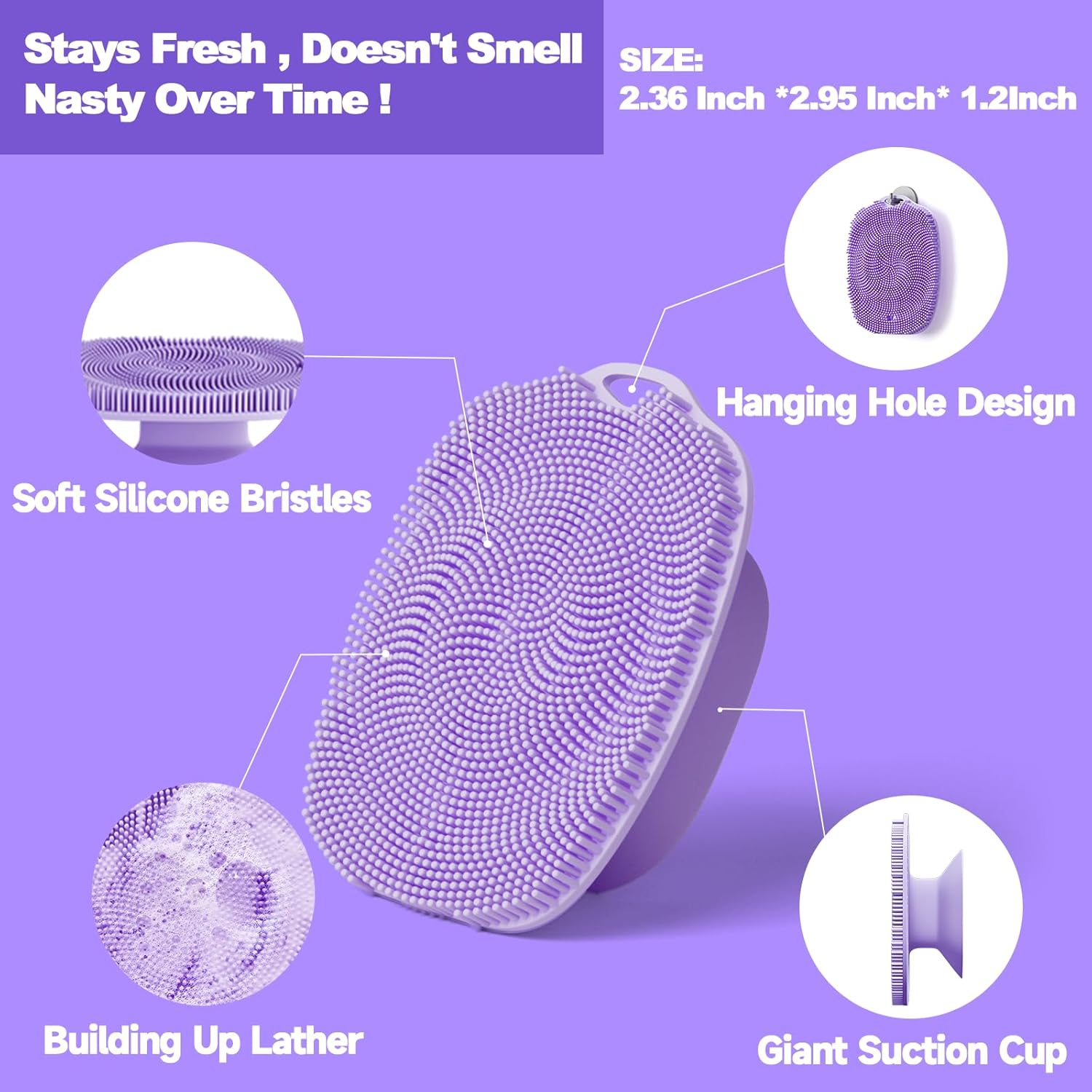 2 PCS Face Scrubber, Soft Silicone Face Exfoliator with Suction Cup for Man and Women Deep Skin Clean, Gentle Facial Cleaning Brush Suitable for All Sensitive Skin (Purple)