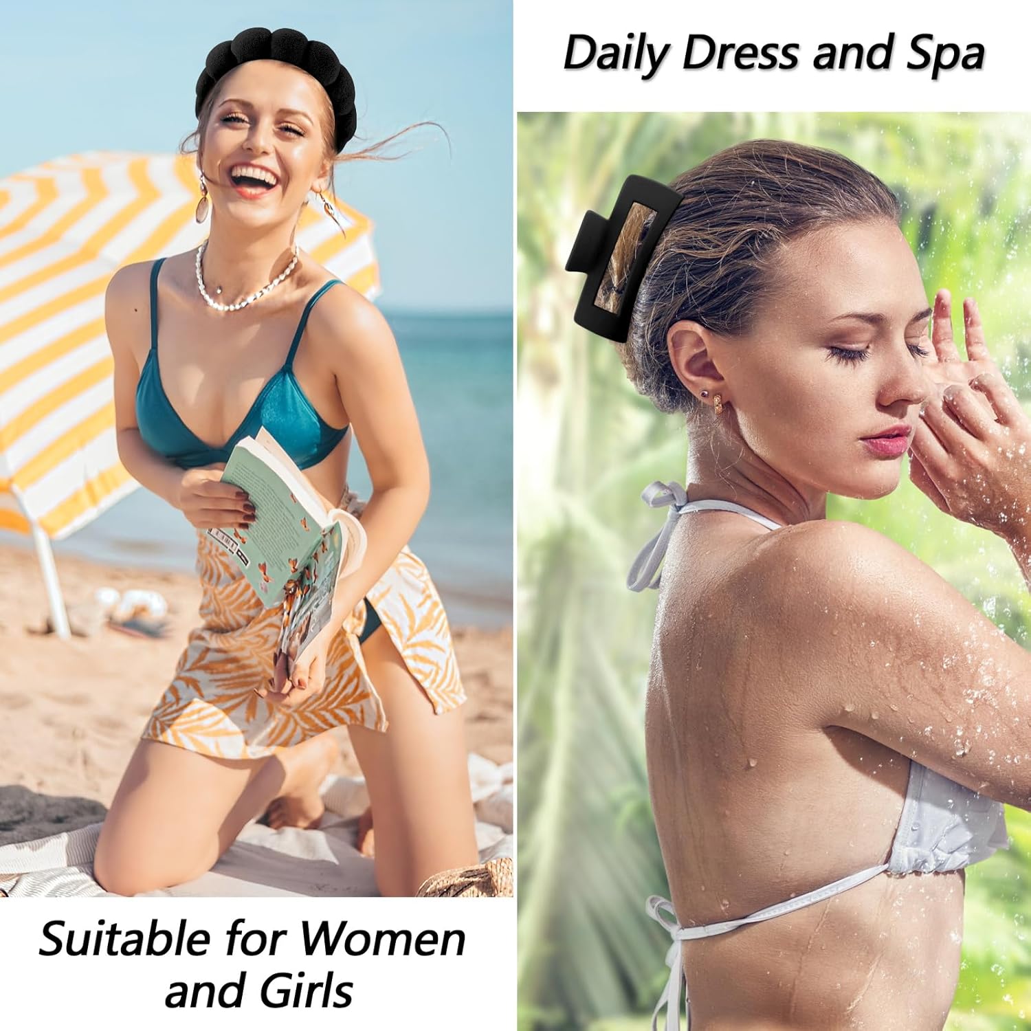 - What you get: The package has two wrist bands, a spa sponge headband, a hair clip, and a bow shape on the top of the spa headband, which makes your face wash easier and simpler