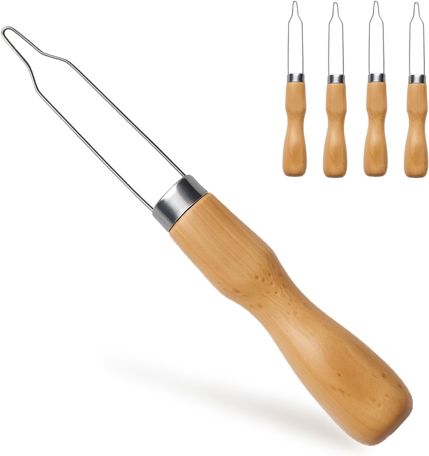 4pcs Button Hook Assist Device with Easy-Grip Wooden Handle for Shirts, Coats, Dresses - Ideal Button Aids for Arthritis & Limited Dexterity Fine Tip