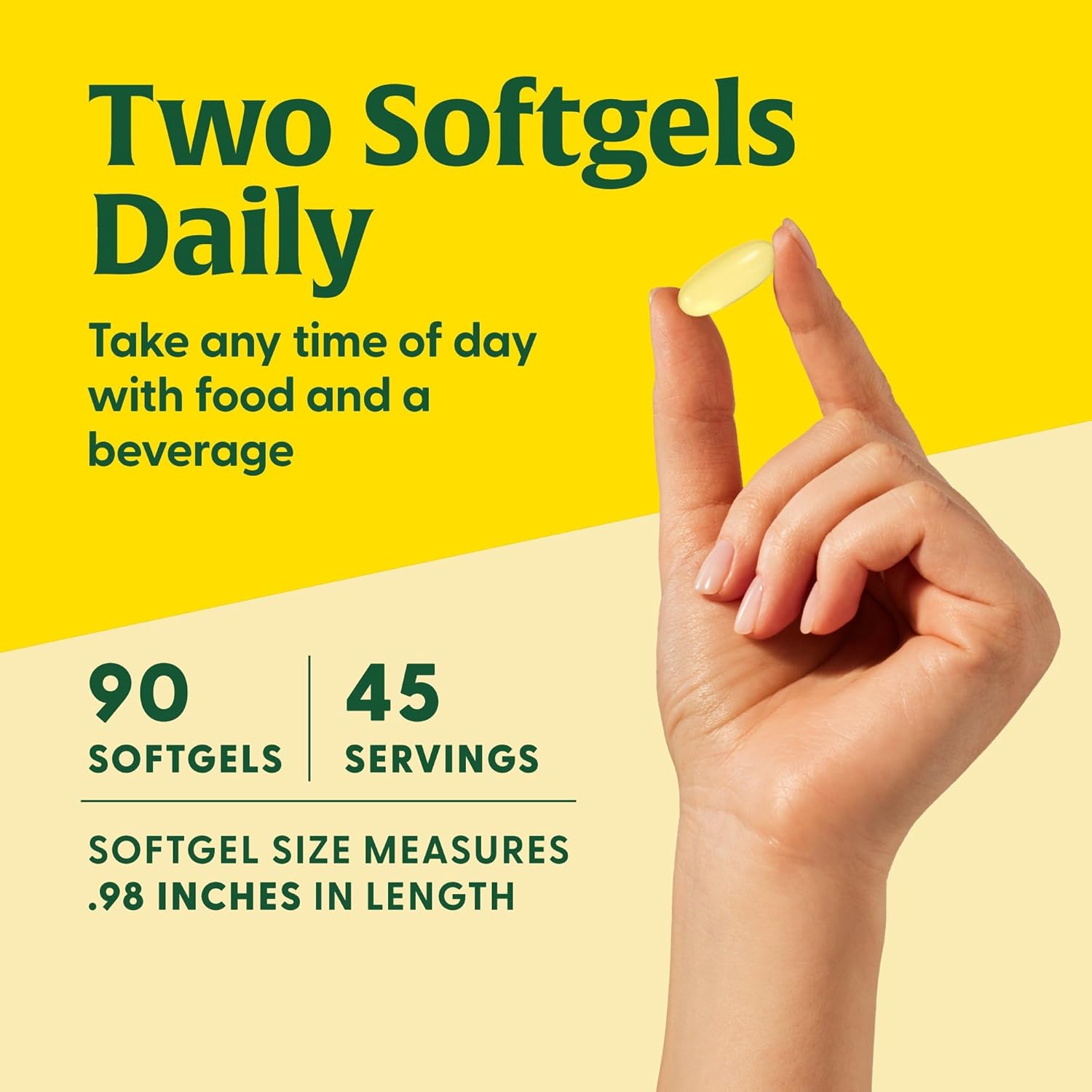 - TAKE ANY TIME OF DAY: Adults take two softgels daily, any time of day with food and a beverage; Bottle contains 90 Omega-3, EPA, & DHA supplements for 45 servings