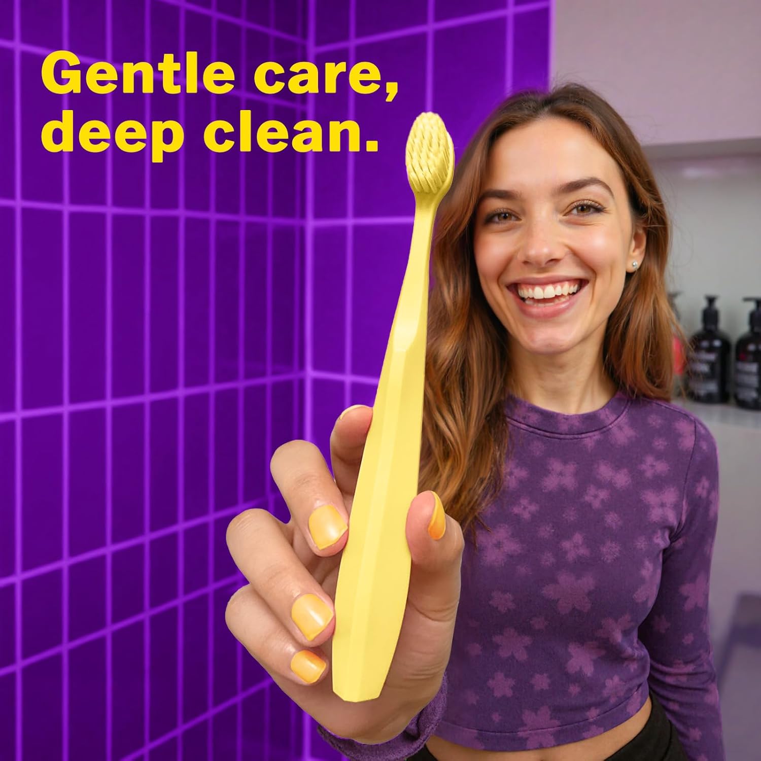 - Extra-Soft Bristles for Sensitive Gums Designed for sensitive or bleeding gums, this extra-soft toothbrush for adults features over 3,000 tapered bristles that gently clean along the gumline for a deep, comfortable clean — even around molars and hard-to-reach back teeth.Labelled as “Soft” on packaging, engineered with extra-fine tapered bristles to deliver an ultra-gentle brushing experience.
