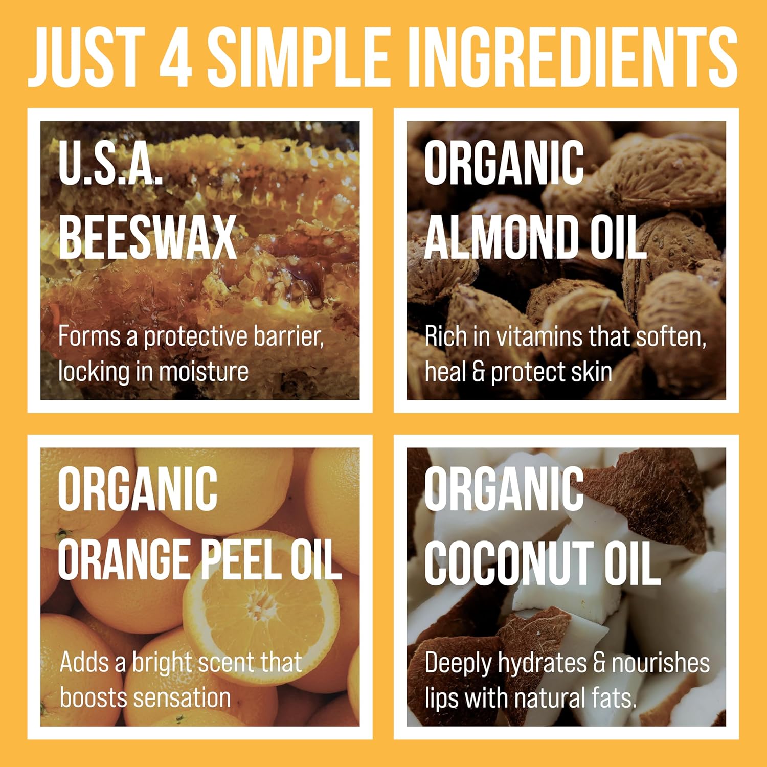 - 100% NATURAL: This perfectly formulated lip balm uses only the highest quality U.S.A. beeswax and other organic ingredients to create the perfect application