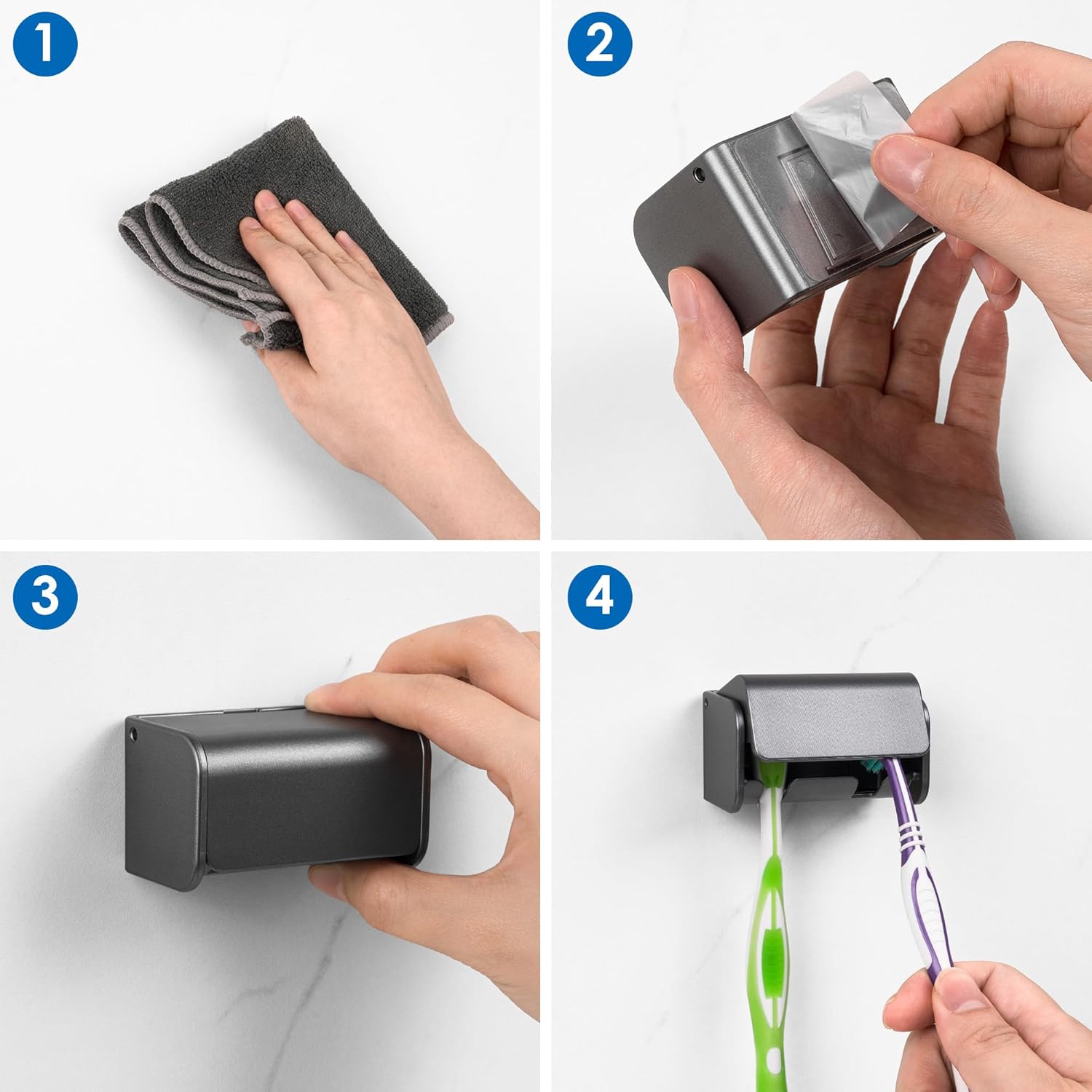 - Self adhesive toothbrush holder is easy to install, self adhesive, no drilling.