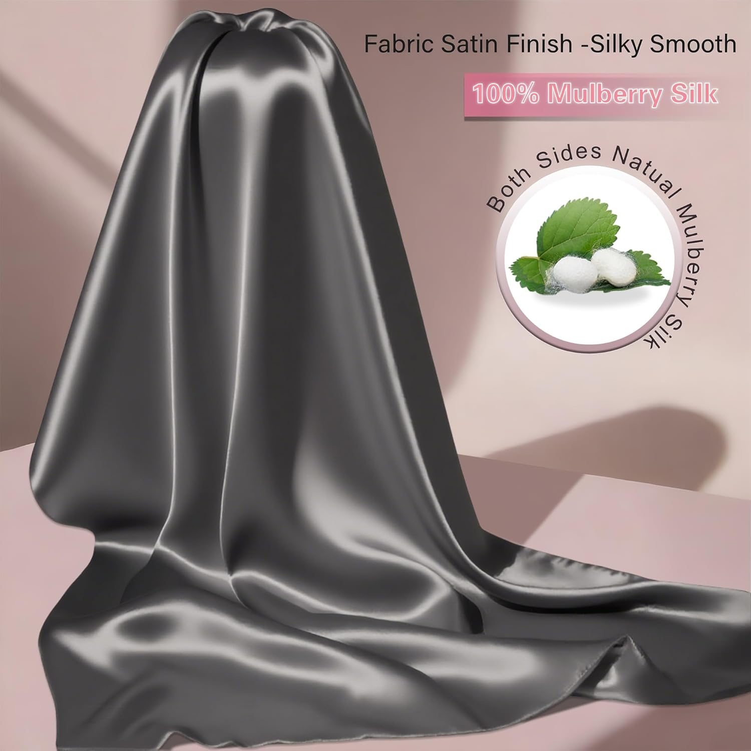 Mulberry Silk Pillow Cases with Zipper, Ultra Smooth Soft Breathable Cooling Pillow Cases for Hot Sleepers, Silk Satin Pillowcase for Hair and Skin, Gifts for Women (Dark Grey, Standard Size, 1 Pack)
