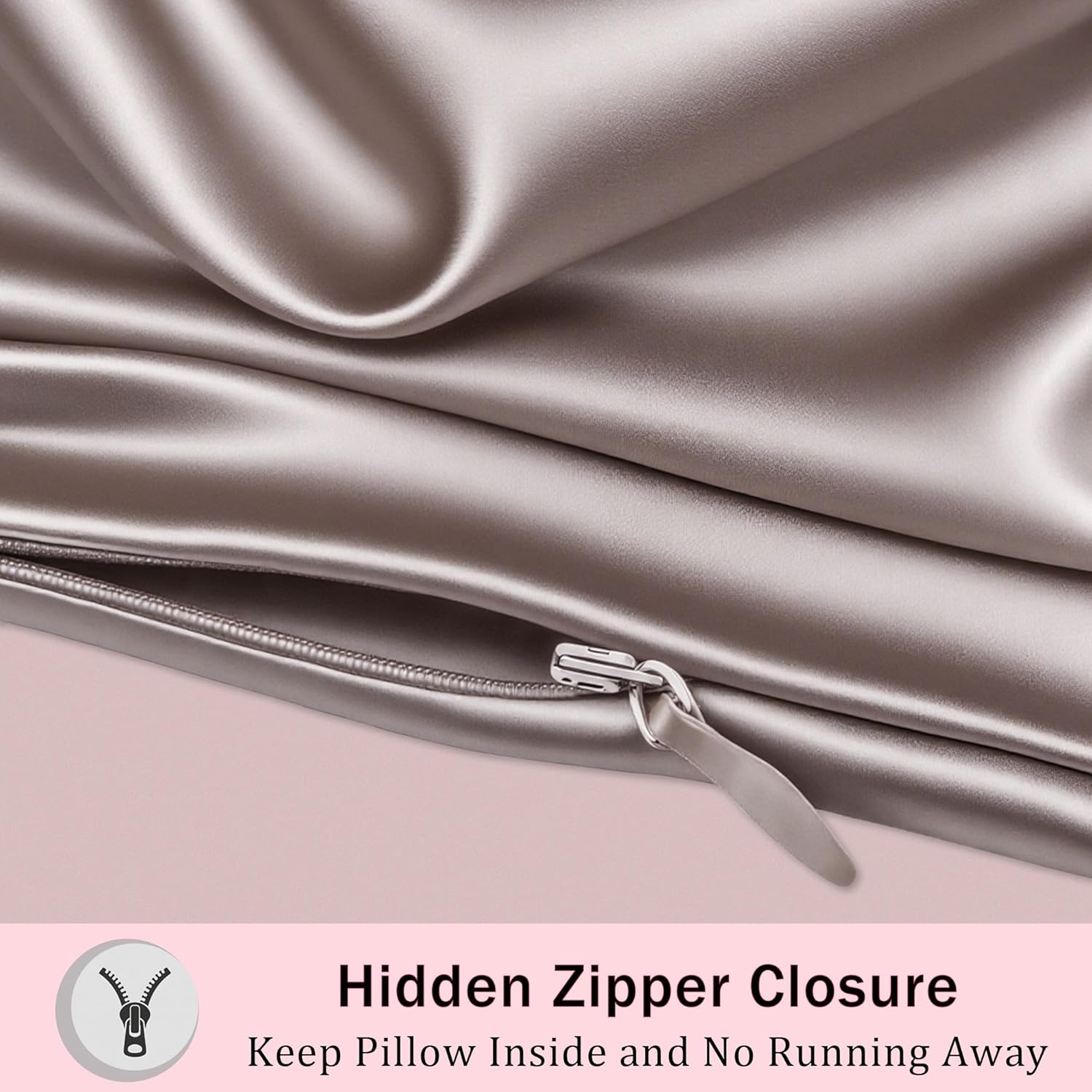 Mulberry Silk Pillow Cases with Zipper, Ultra Smooth Soft Breathable Cooling Pillow Cases for Hot Sleepers, Silk Satin Pillowcase for Hair and Skin, Gifts for Women (Taupe, King Size, 1 Pack)