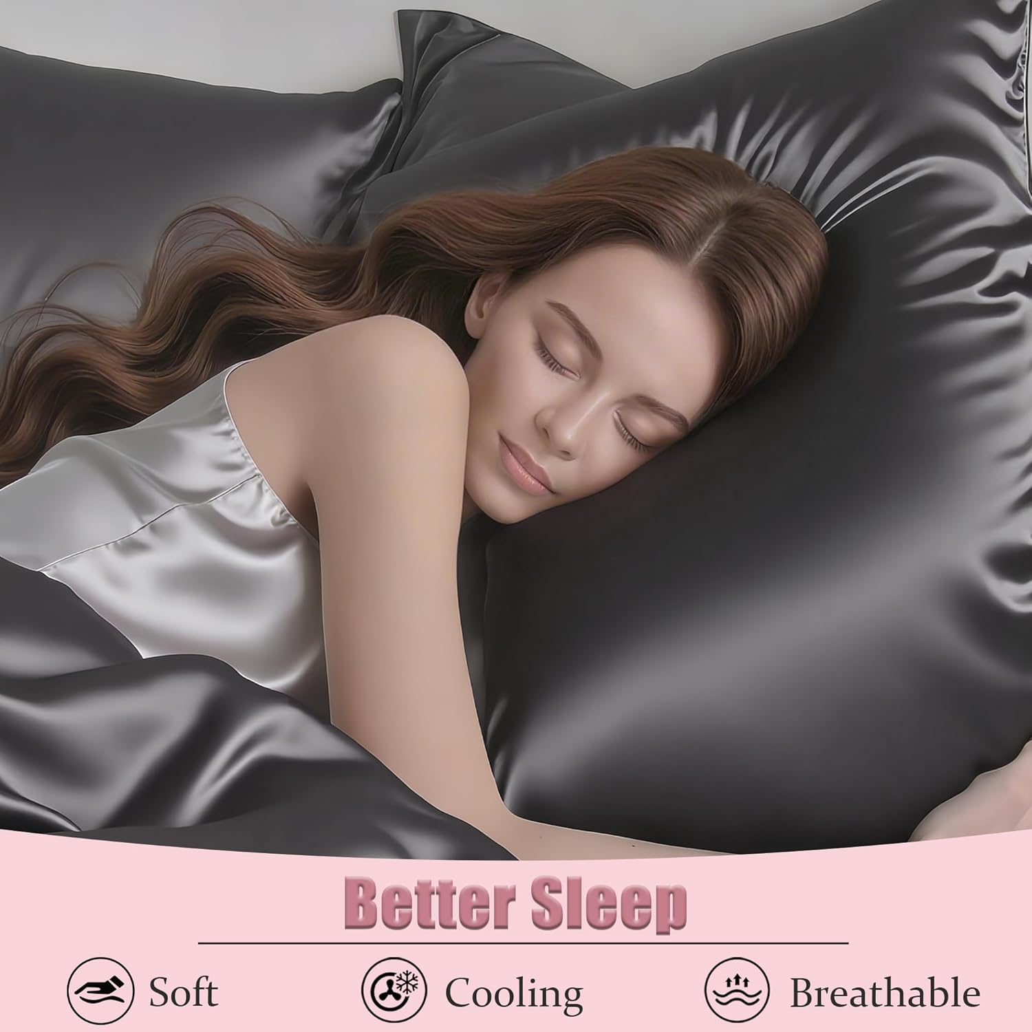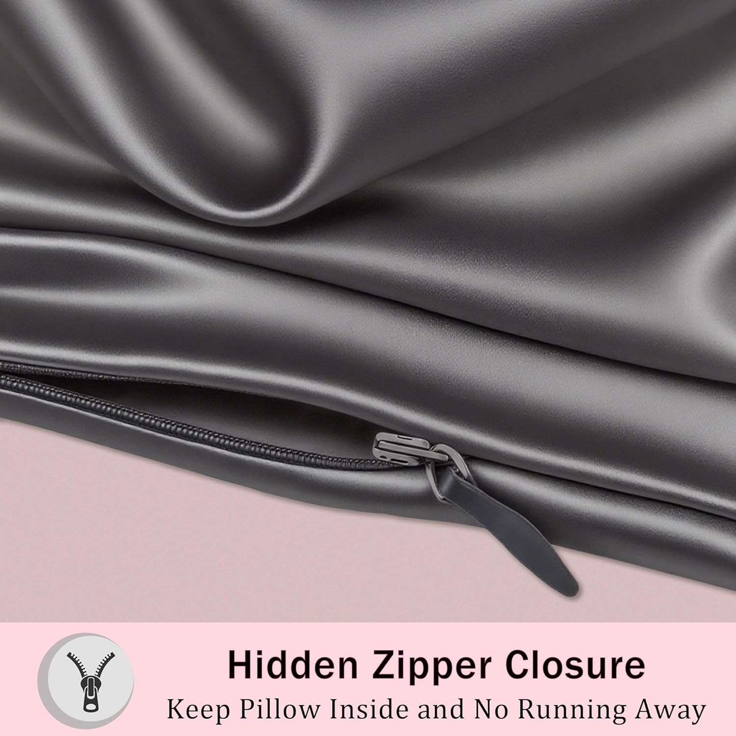 Mulberry Silk Pillow Cases with Zipper, Ultra Smooth Soft Breathable Cooling Pillow Cases for Hot Sleepers, Silk Satin Pillowcase for Hair and Skin, Gifts for Women (Dark Grey, Queen Size, 1 Pack)