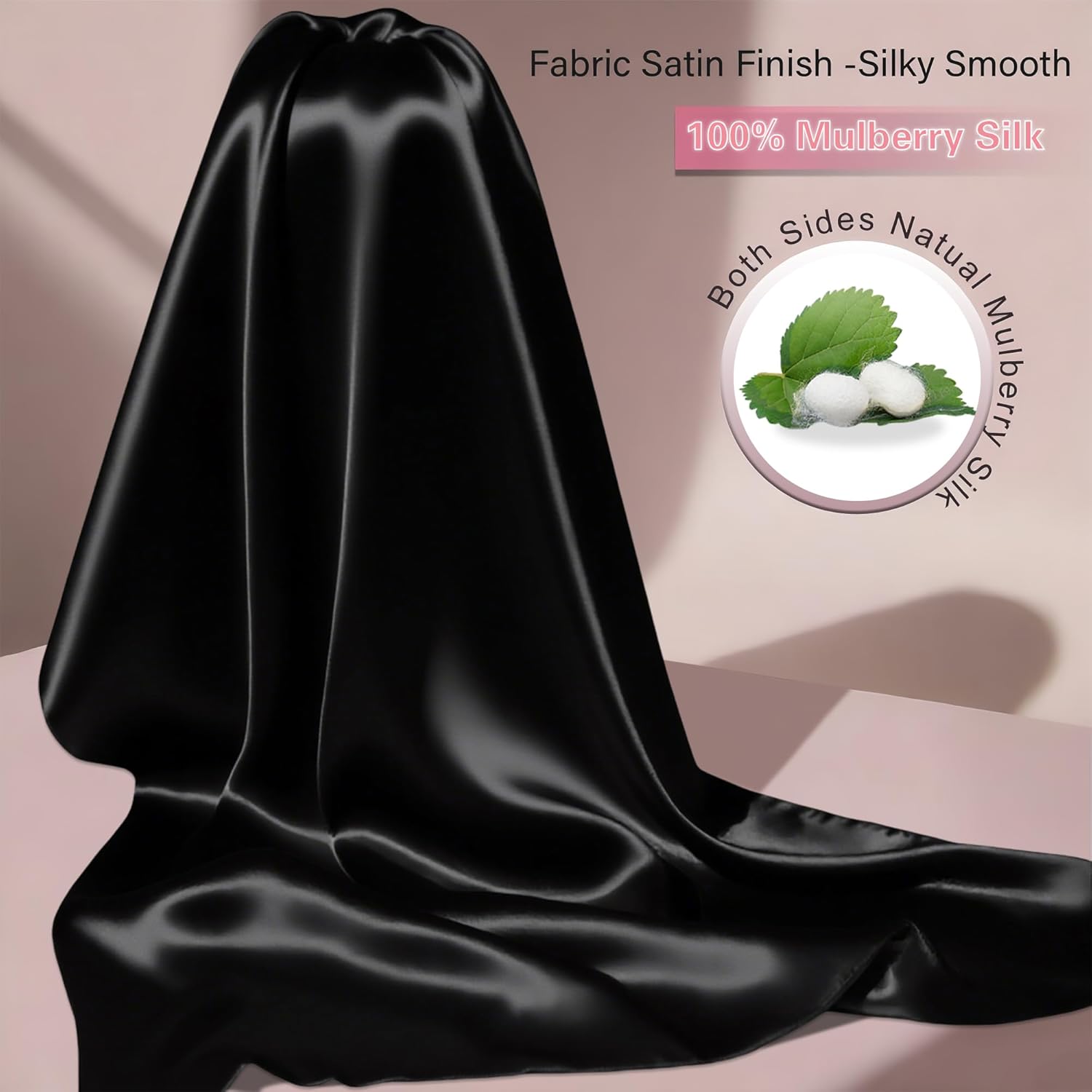 Mulberry Silk Body Pillow Pillowcase with Zipper, Ultra Smooth Soft Breathable Cooling Pillow Cases for Hot Sleepers, Silk Satin Body Pillow Cover for Hair and Skin (Black, 20×54 Inches, 1 Pack)