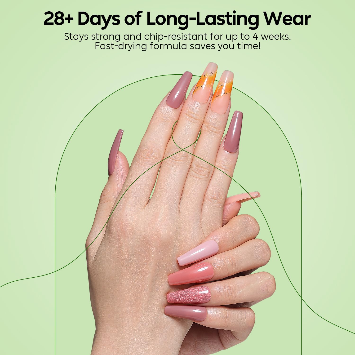 - Our uv gel nail polish offers a smooth, high-shine application with up to 28 days of wear, perfect for those seeking gel nails that combine beauty and longevity.