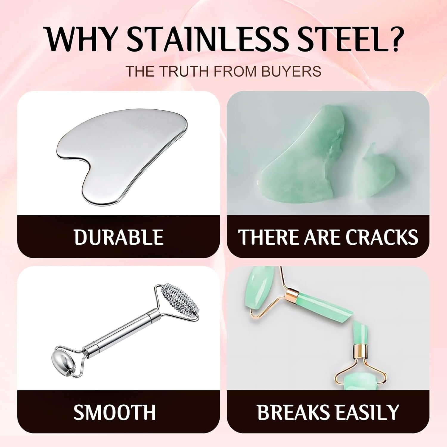- 【Sturdy And Durable】This gua sha tool for face and stainless steel face roller are made entirely of metal, offering a cooling, refreshing feel that elevates your skincare routine. Ideal for those who love high-quality face massager tools