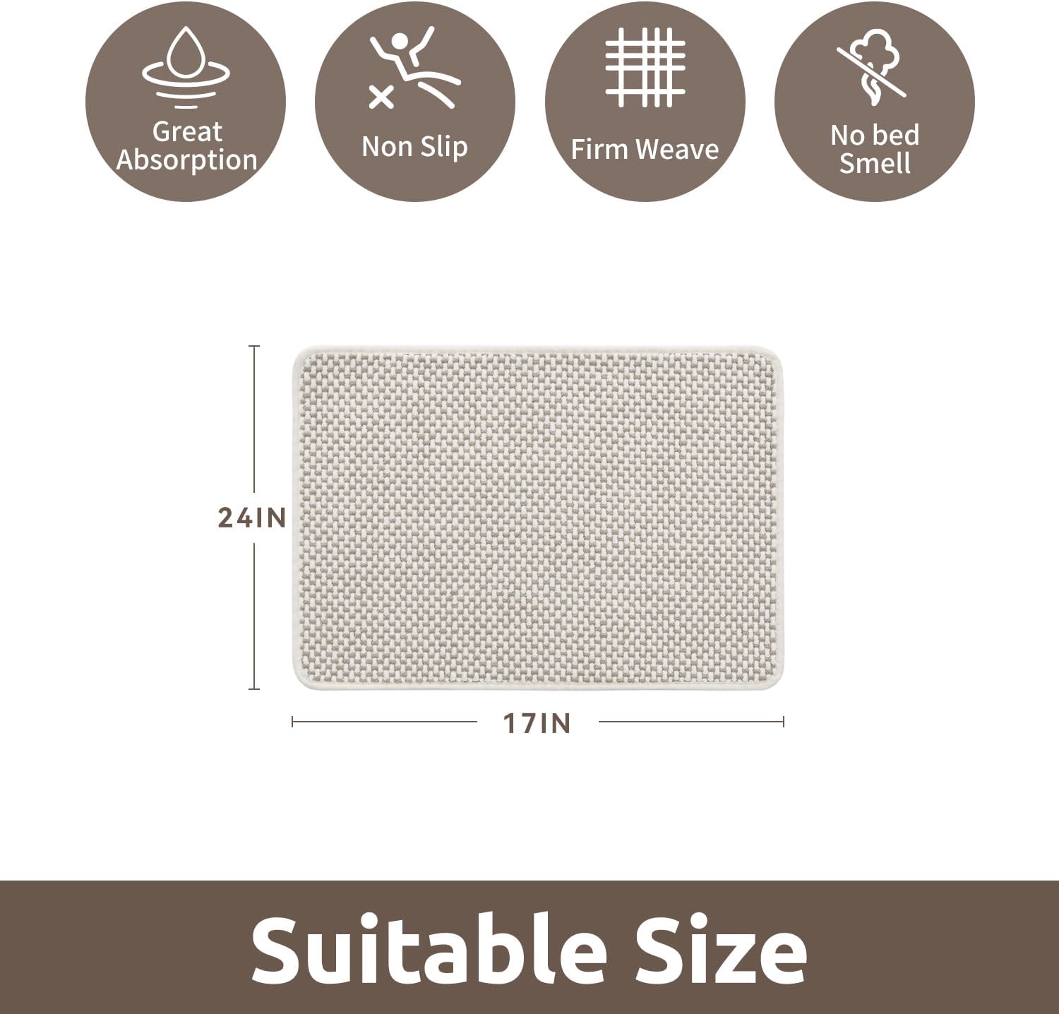 - [Super Absorbency] Tightly woven non slip bath mat with premium material quickly absorbs water keep floors dry and clean. Breathable structure makes dry quickly. Ideal bathroom floor mat for daily use, it helps maintain a clean, comfortable, and slip-free environment.
