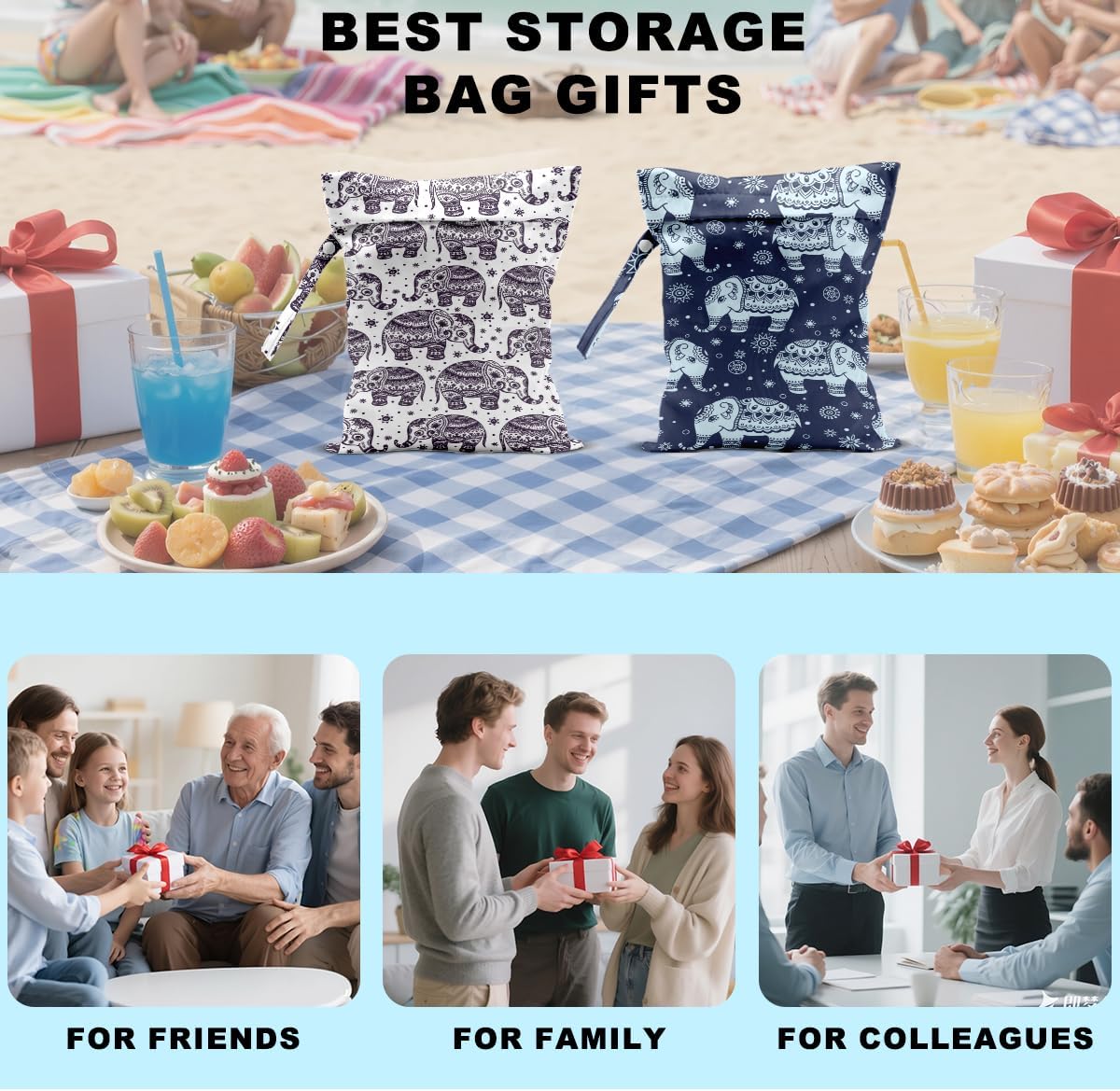 2Pcs Elephant Wet Bag 12x10 Inch, Exotic Elephants Waterproof Travel Laundry Bags, Washable Reusable Wet Dry Bag for Swimsuit Beach Diapers Dirty Yoga Gym Clothes, Elephant Gifts for Women Friend