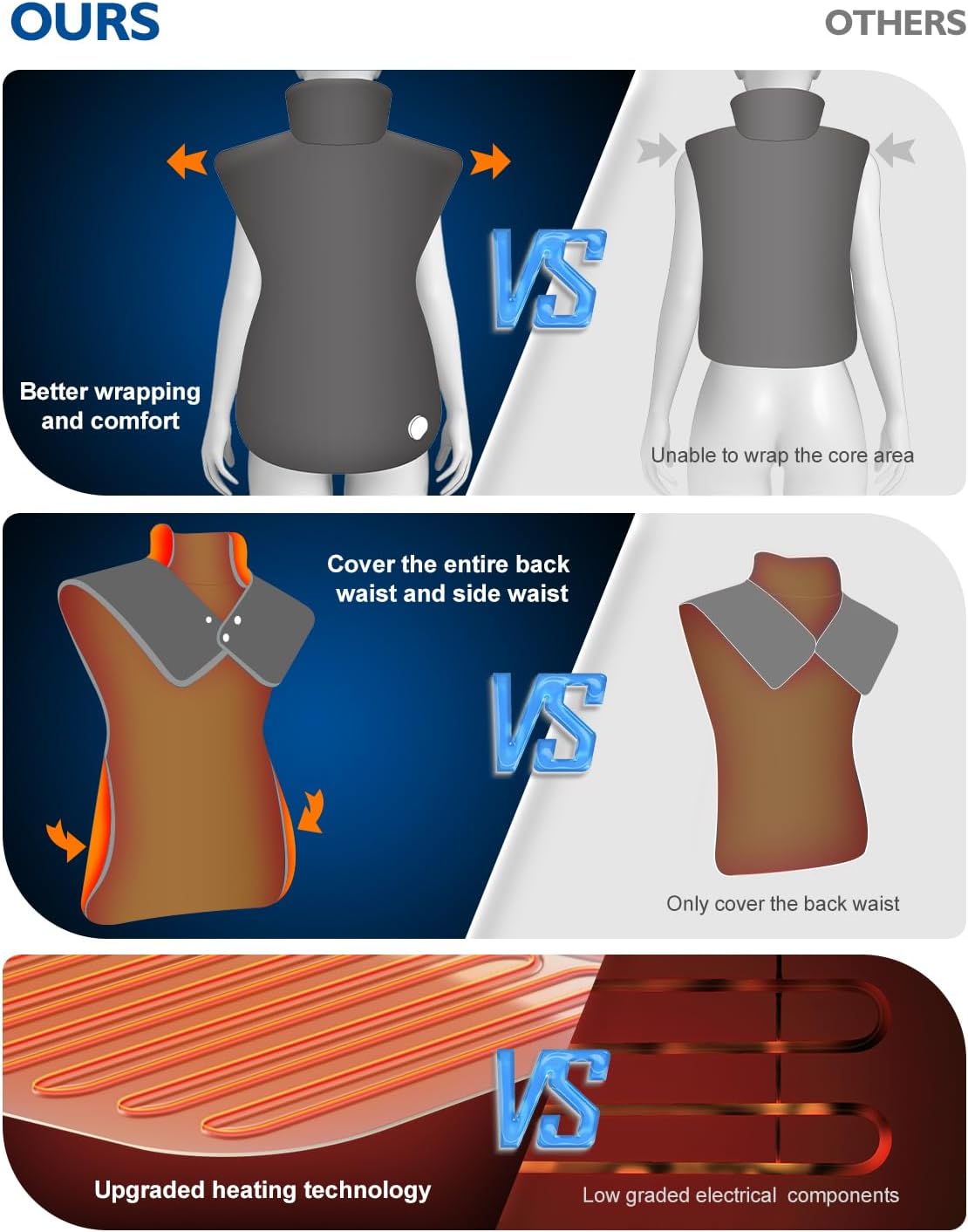 - The Gift That Truly Cares: Searching for a gift that shouts, "I genuinely care about your comfort and wellness"? This wearable heating pad is the warm hug of gifts, universally cherished by mom, dad, him, her, grandpa, grandma, wife and husband alike. The gentle, penetrating heat helps melt away tension and stress, encouraging deep relaxation – a warm and thoughtful retirement, anniversary, birthday, Christmas gifts for men women. It’s more than a present; it's a daily dose of relaxation, a shield against stress, and a silent promise of relief from nagging pains. Give the gift of tangible, heartfelt comfort