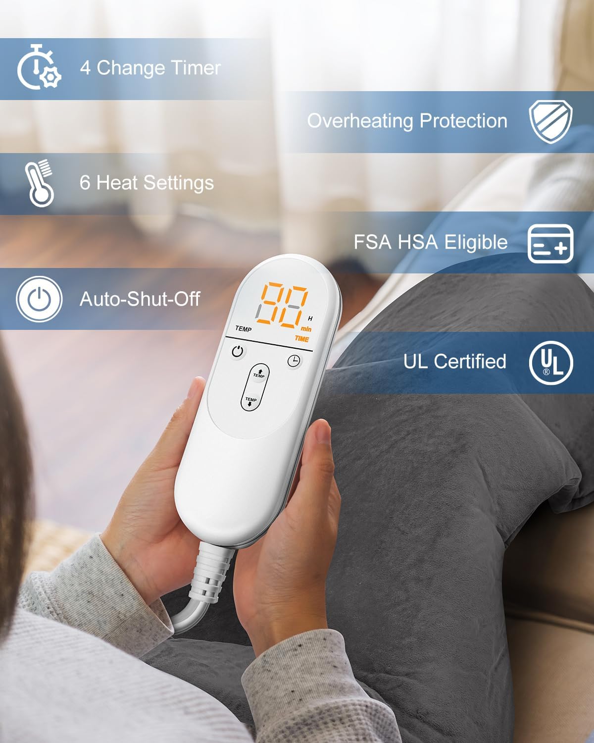 - Relax with Peace of Mind: Our heated pad isn't just comforting; it's a fortress of security. UL certified for safety and featuring automatic overheat protection. Personalize your experience with 6 adjustable heat settings (gentle to intense) and 4 auto-shutoff timers. Perfect for falling asleep worry-free or focusing on work. Whether you using it while reading, or snoozing on the couch, or powering through emails at your desk, the combination of certified safety and personalized settings ensures maximum comfort with zero stress