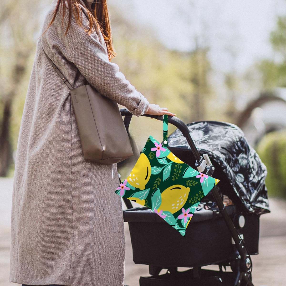 Lemon Wet Bags 12x10 Inch, Summer Flowers Waterproof Travel Laundry Bags, Washable Reusable Wet Dry Bag for Swimsuit Pool Beach Diapers Dirty Yoga Gym Clothes, Lemon Gifts for Women Friend Travelers