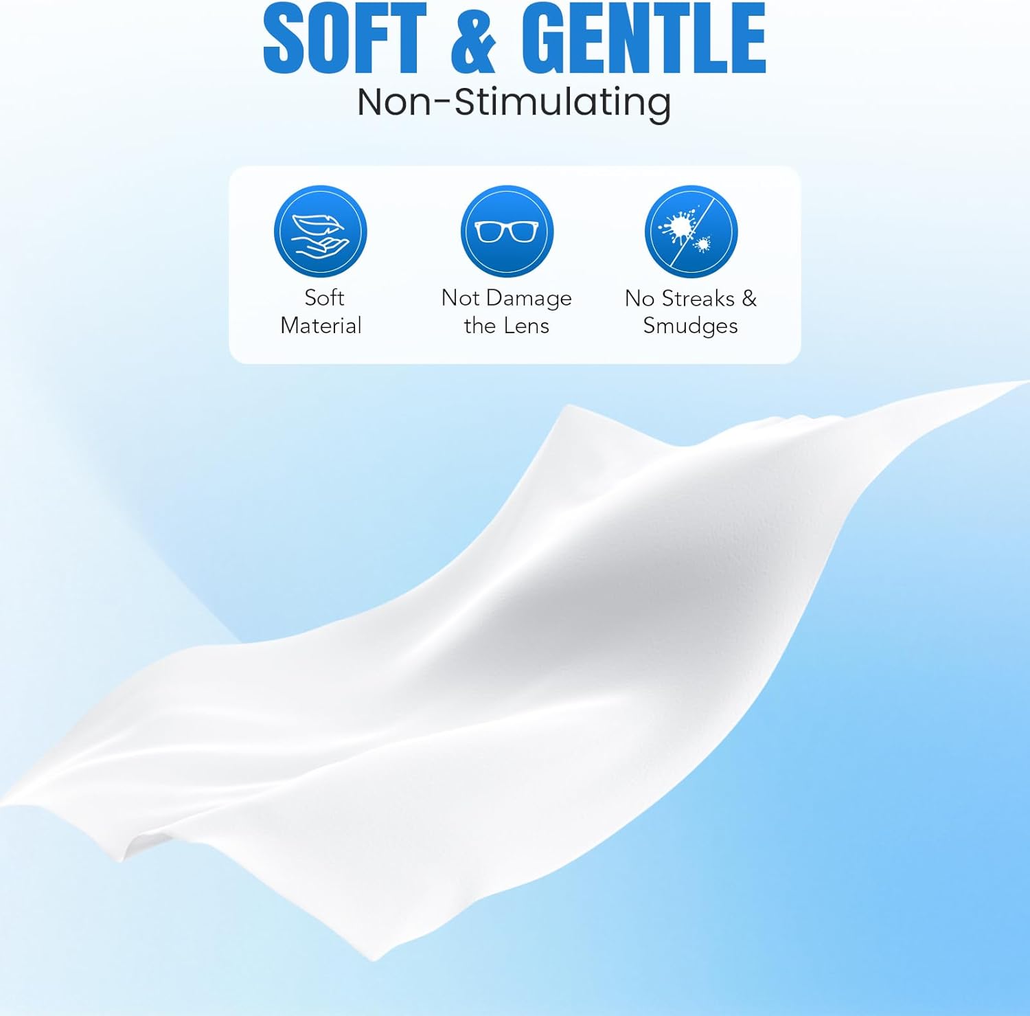 - 【Plant-Based Fibers】Our eye glasses cleaner wipes are made from sustainable, plant-based fibers! These wipes are free of dyes, parabens, chemical binders, alcohol, chlorine, phthalates, etc. Mild and non-irritating.