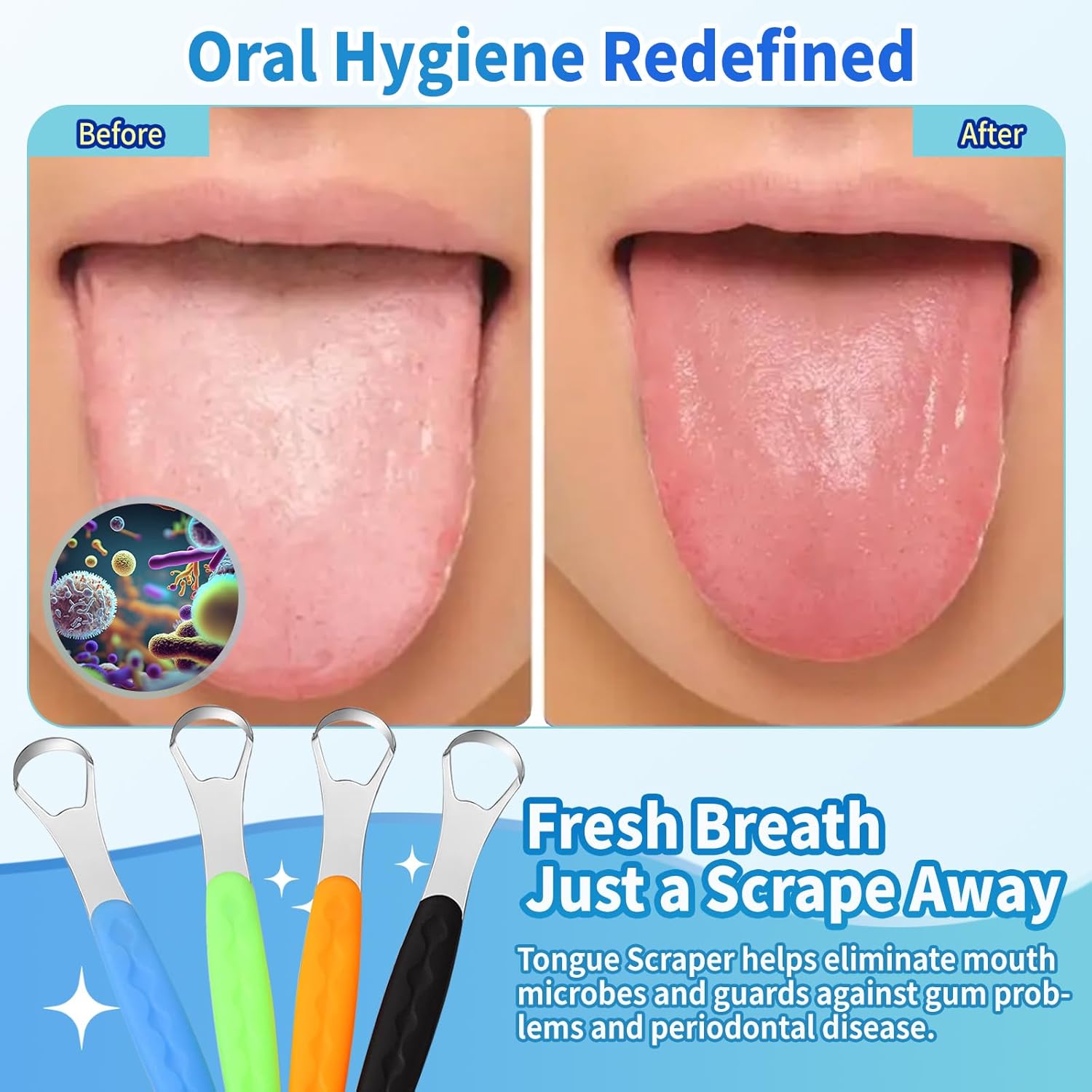 - Travel-Friendly & Family-Sized Set: 4-piece tounge scraper set, each piece comes with its own dedicated portable travel case, making it easy to take on the go while keeping things hygienic. Multiple colors help distinguish between family members, so everyone has their own. Perfect for home, the office, or travel