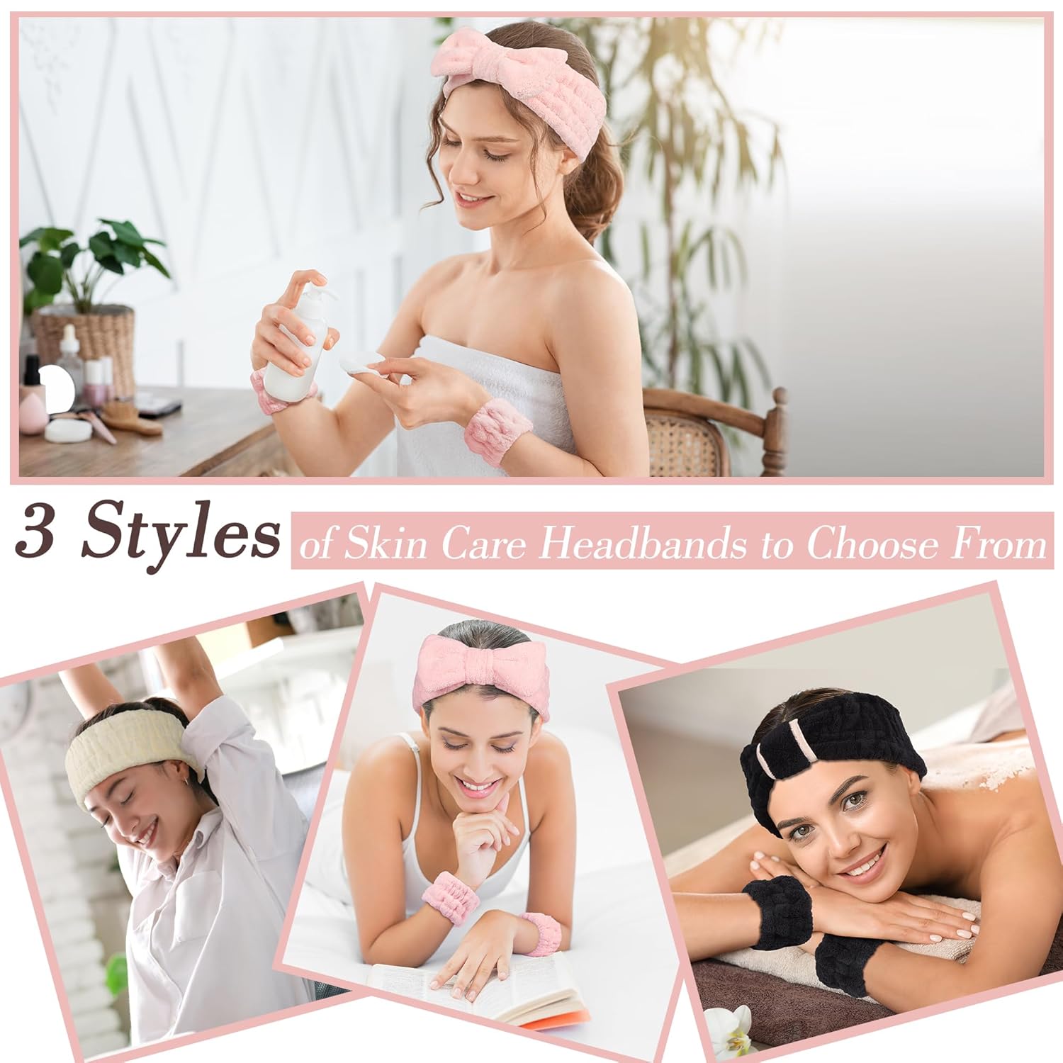 - 【3 Headbands & 6 Wristbands】Get ready to mix and match like a pro! This skincare headband and wristband set comes with 3 stylish spa headbands (in different colors) and 6 matching wristbands. Create your perfect combo daily—based on your mood, outfit, or vibe. Your spa crew, your rules!