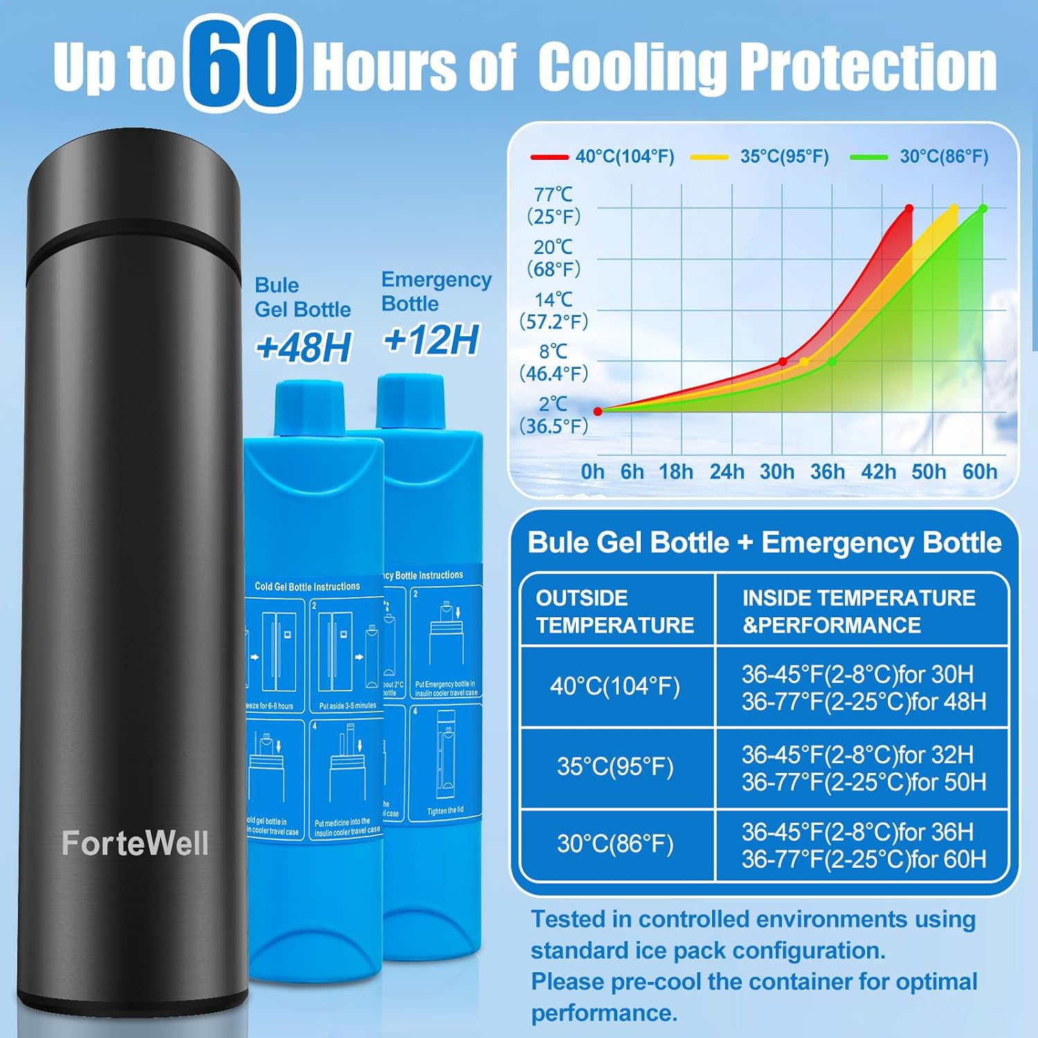 - 【60-Hour Insulin Cooler for Travel and Daily Use】 - This insulin travel case keeps your medications cool for up to 60 hours using advanced vacuum insulation and bio-gel ice packs. Ideal for long trips, outdoor activities, or extended business travel – your insulin stays effective and safe