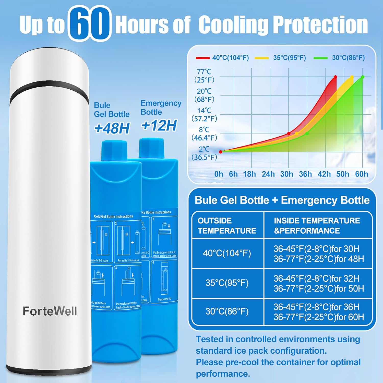 - 【60-Hour Insulin Cooler for Travel and Daily Use】 - This insulin travel case keeps your medications cool for up to 60 hours using advanced vacuum insulation and bio-gel ice packs. Ideal for long trips, outdoor activities, or extended business travel – your insulin stays effective and safe