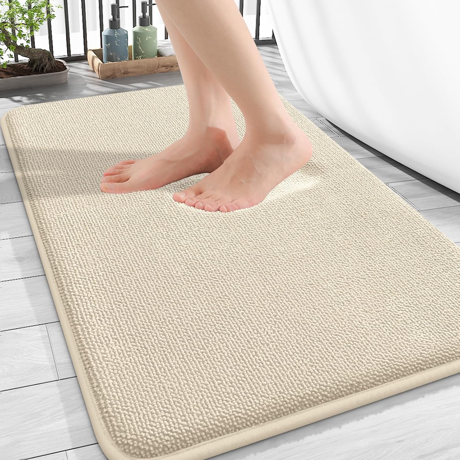 OLANLY Thick Memory Foam Bath Mat Rug 30x20, Extra Soft Absorbent Bathroom Rug, Quick Dry Bath Mats, Non-Slip, Machine Washable Carpet for Bathroom, Tub and Shower, Home Decor Accessories, Sand