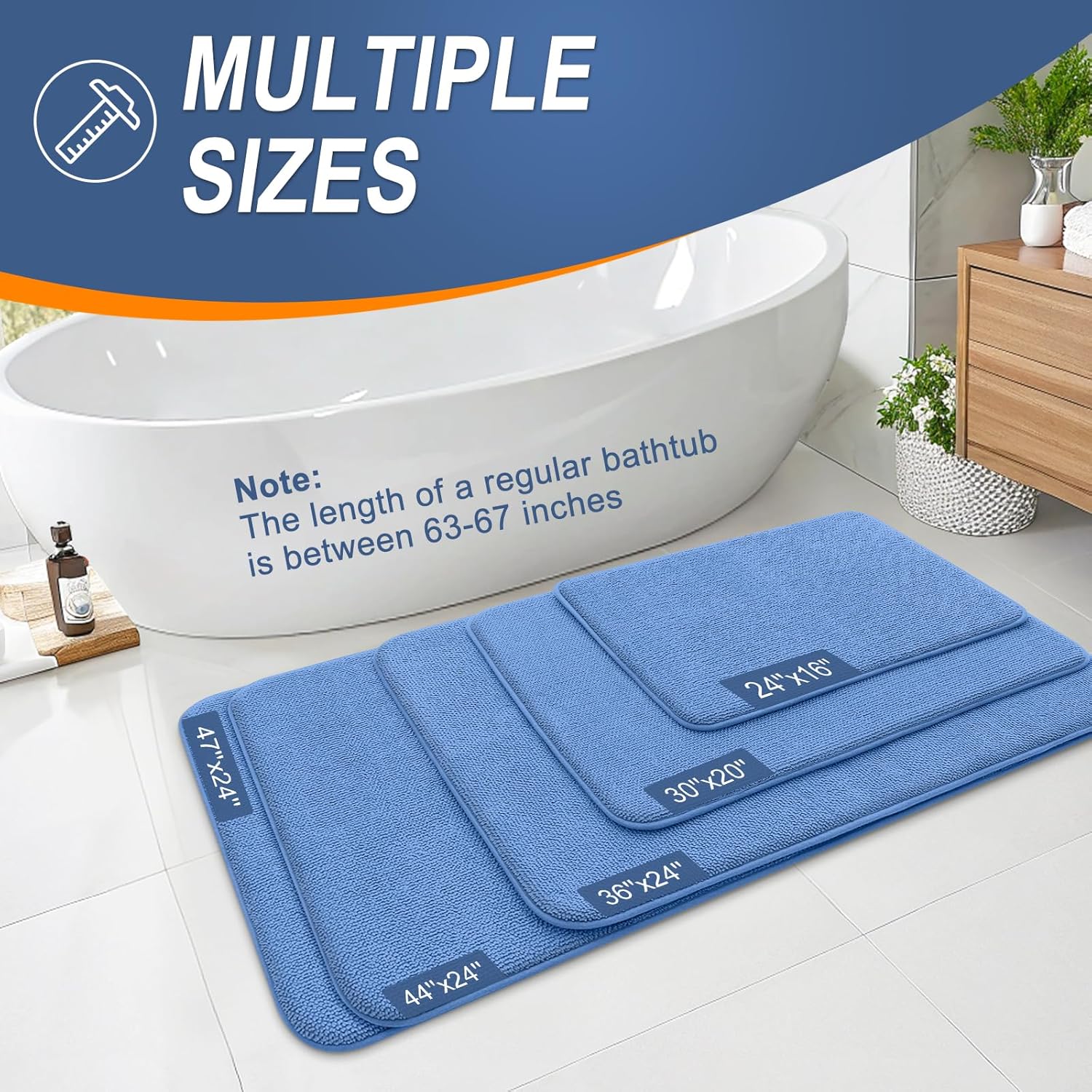 OLANLY Thick Memory Foam Bath Mat Rug 24x16, Extra Soft Absorbent Bathroom Rug, Quick Dry Bath Mat, Non-Slip, Machine Washable Carpet for Floor, Tub and Shower, Home Decor Accessories, Cornflower Blue