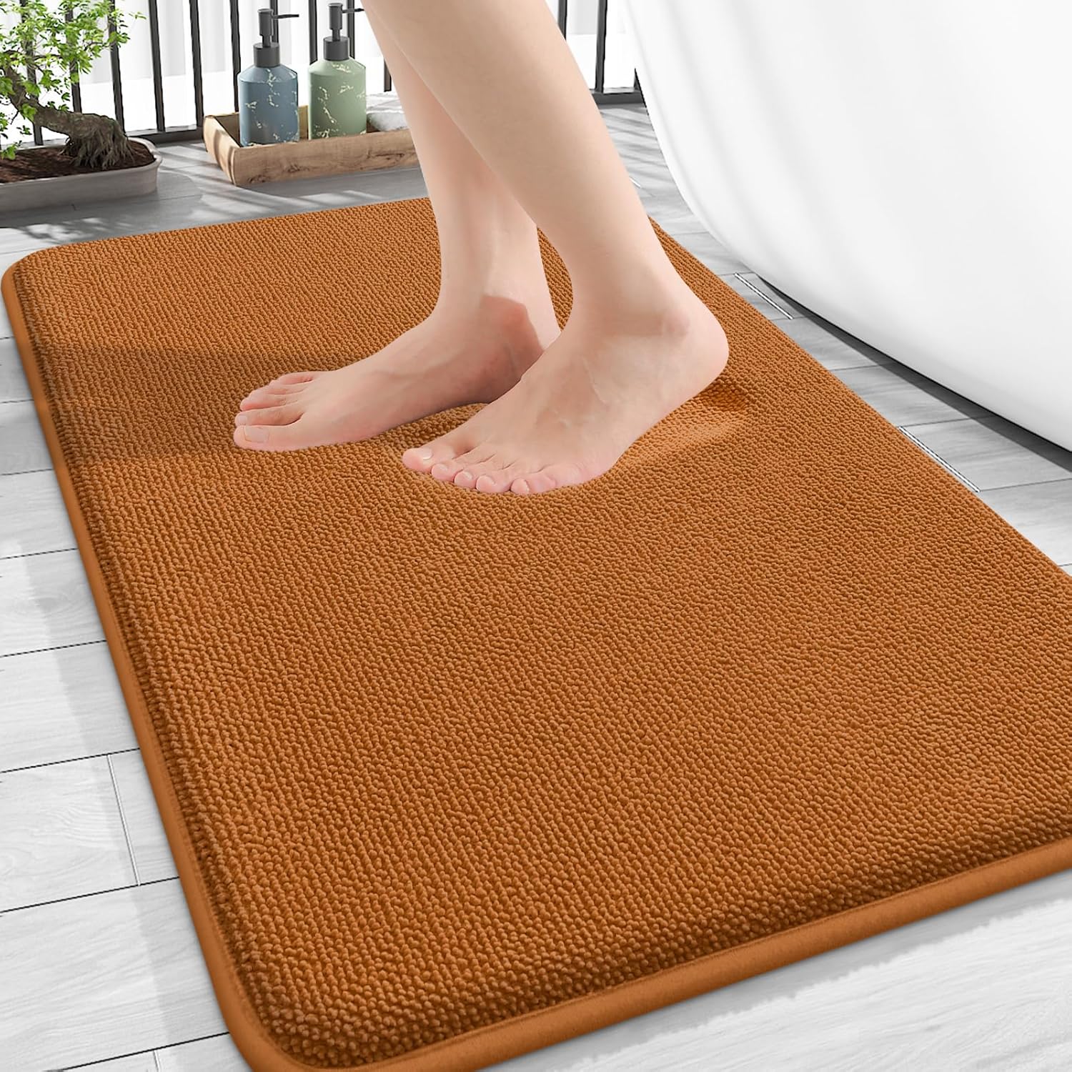 OLANLY Thick Memory Foam Bath Mat Rug 30x20, Extra Soft Absorbent Bathroom Rug, Quick Dry Bath Mats, Non-Slip, Machine Washable Carpet for Bathroom, Tub and Shower, Home Decor Accessories, Ochre