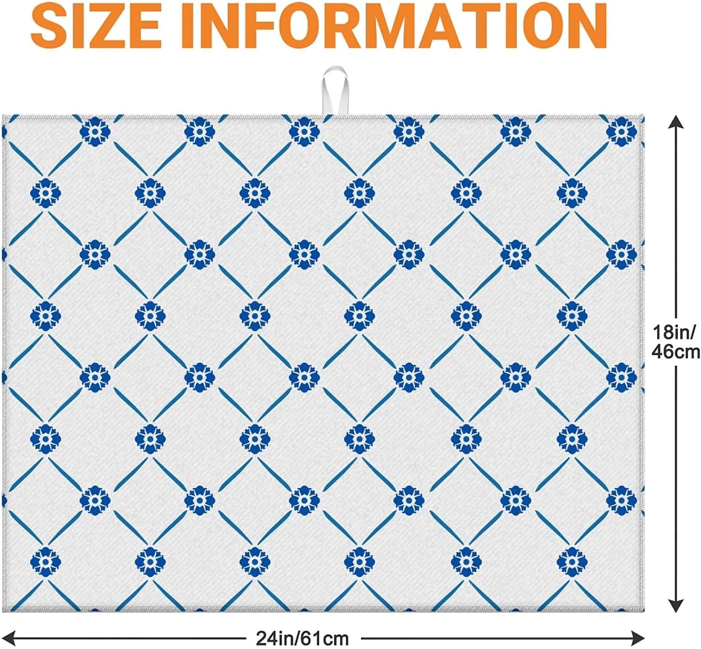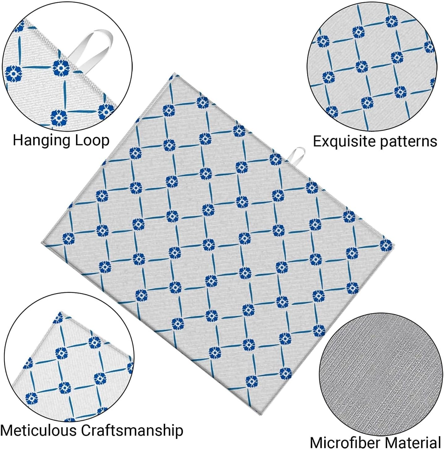 Dish Drying Mat For Kitchen Counter, Blue Floral Microfiber Absorbent Dish Drainer Rack Pad Reusable Large 18x24in Drying Mat