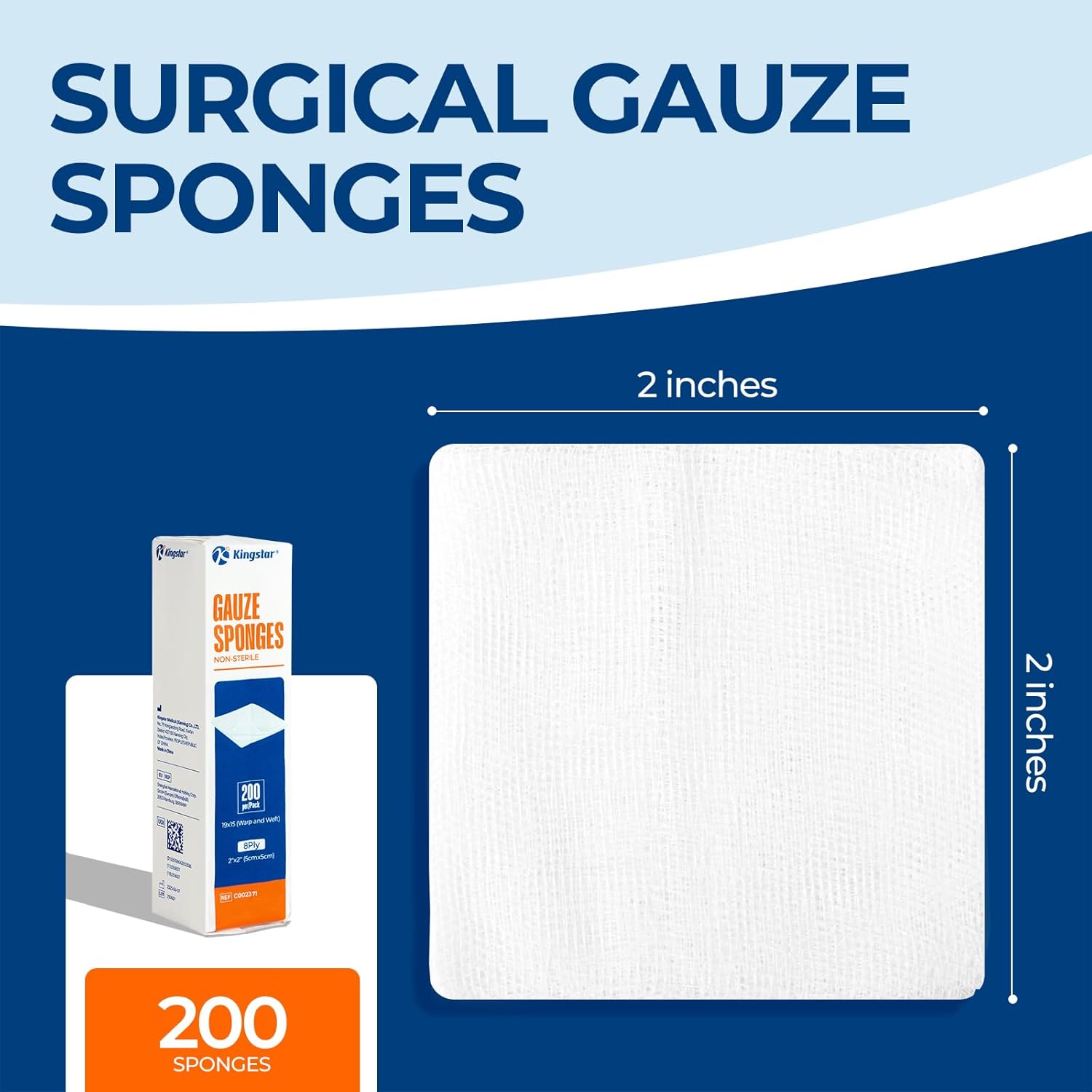 - Highly Absorbent: The gauze sponges 2x2 inch remain intact without tearing even when saturated. Each pack contains 200 pieces, with an 8-ply structure and a 19Ă15 thread per inch, producing less lint compared to normal gauze