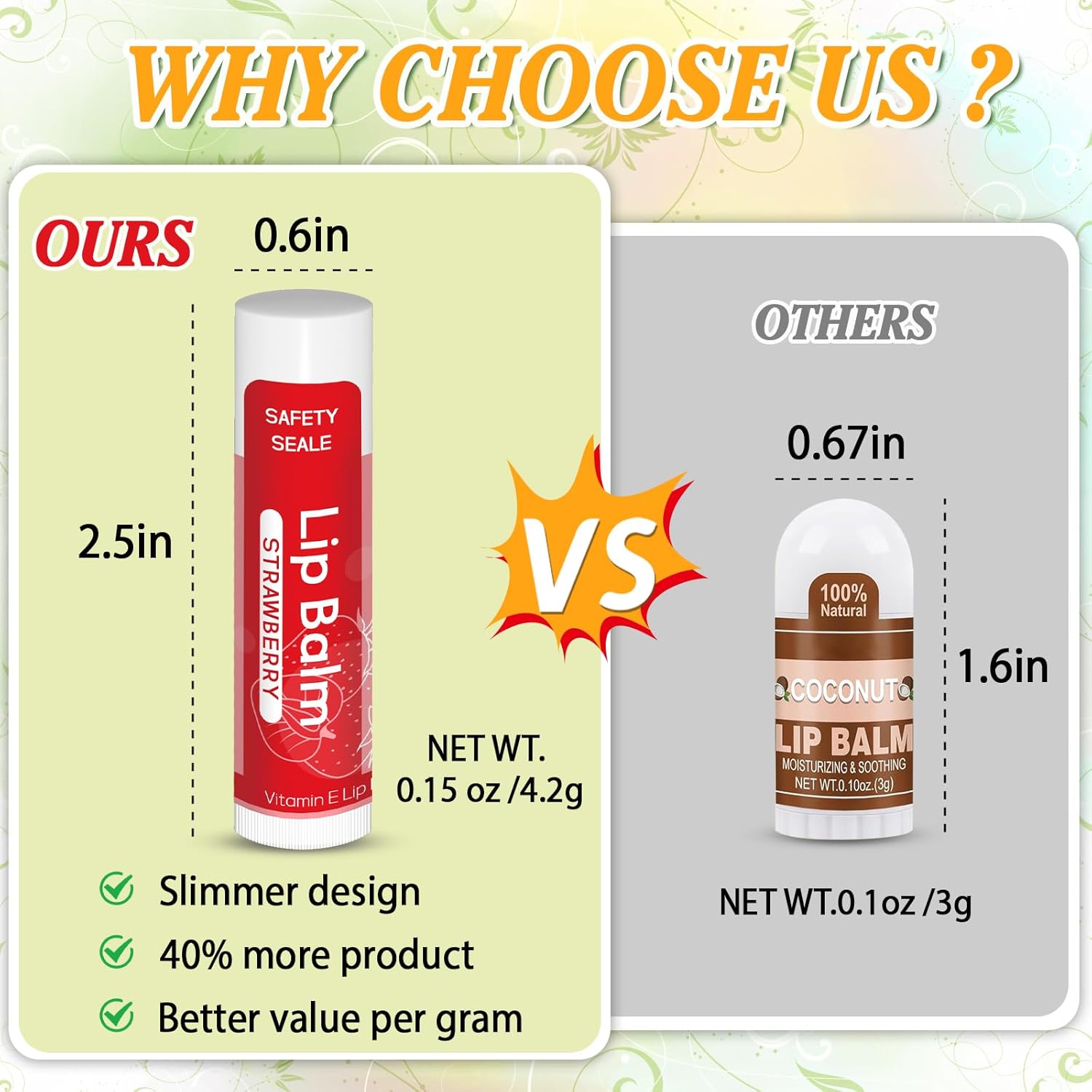 - Lip Balm 42 pack bulk 14 natural fruit plant flavors - including Lily of the Valley, mint, vanilla, rose, apple, strawberry, pineapple, peach, citrus, coconut, watermelon, grape, cherry, and mango. We cater to your preferences